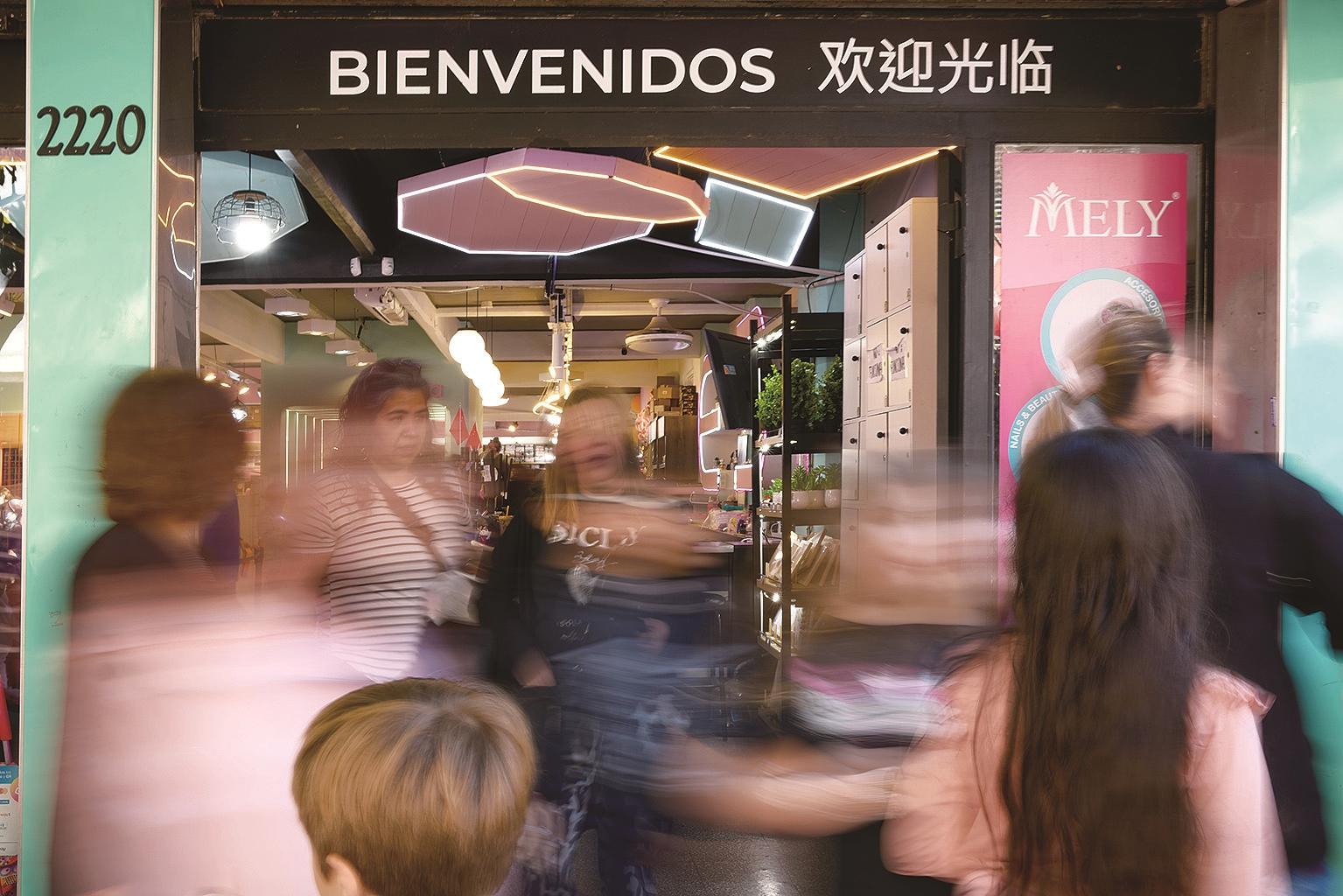2025年5月10日,在阿根廷布宜诺斯艾利斯,人们走过“中国城”的一家中国超市。