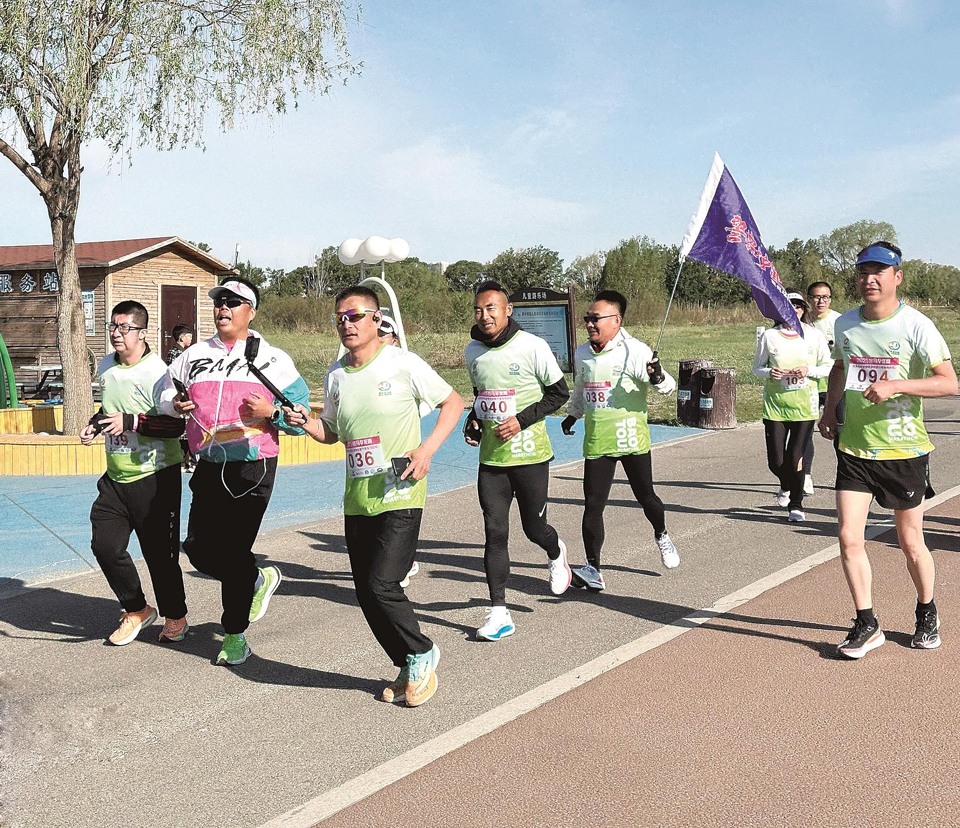 活动现场,选手们有序排队领取运动装备、参赛服、号码布等物资,承载着对这场奔跑之旅的期待。专业教练带领大家进行系统热身,跳跃、动态激活……每个动作都为即将开启的奔跑作好准备。随着清脆的发令枪响,跑者们从广场出发,沿着城中草原蜿蜒的步道前行。一路上,清新的空气沁人心脾,广阔无垠的绿野在脚下延伸,蓝天白云相映成趣。跑者们迎着微风,在奔跑中尽情欣赏“最美赛道”的迷人风光,将草原的壮阔与城市的风光尽收眼底。