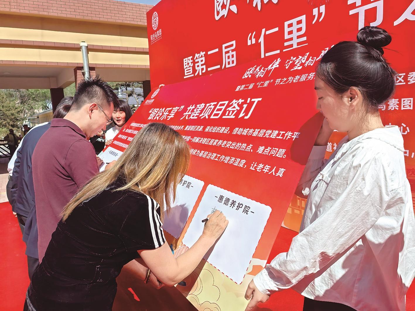 活动现场,乌素图街道和青山养护院分别发布养老服务中心服务项目和“心计划”“暖心送餐”“爱心理发”等为民服务项目;与青山养护院、惠德养护院、二〇二医院、卫生服务中心签订“银铃乐享”共建项目;为“银杏志愿者”服务队正式授旗,为辖区外卖员、快递员颁发“移动网格员”聘书。