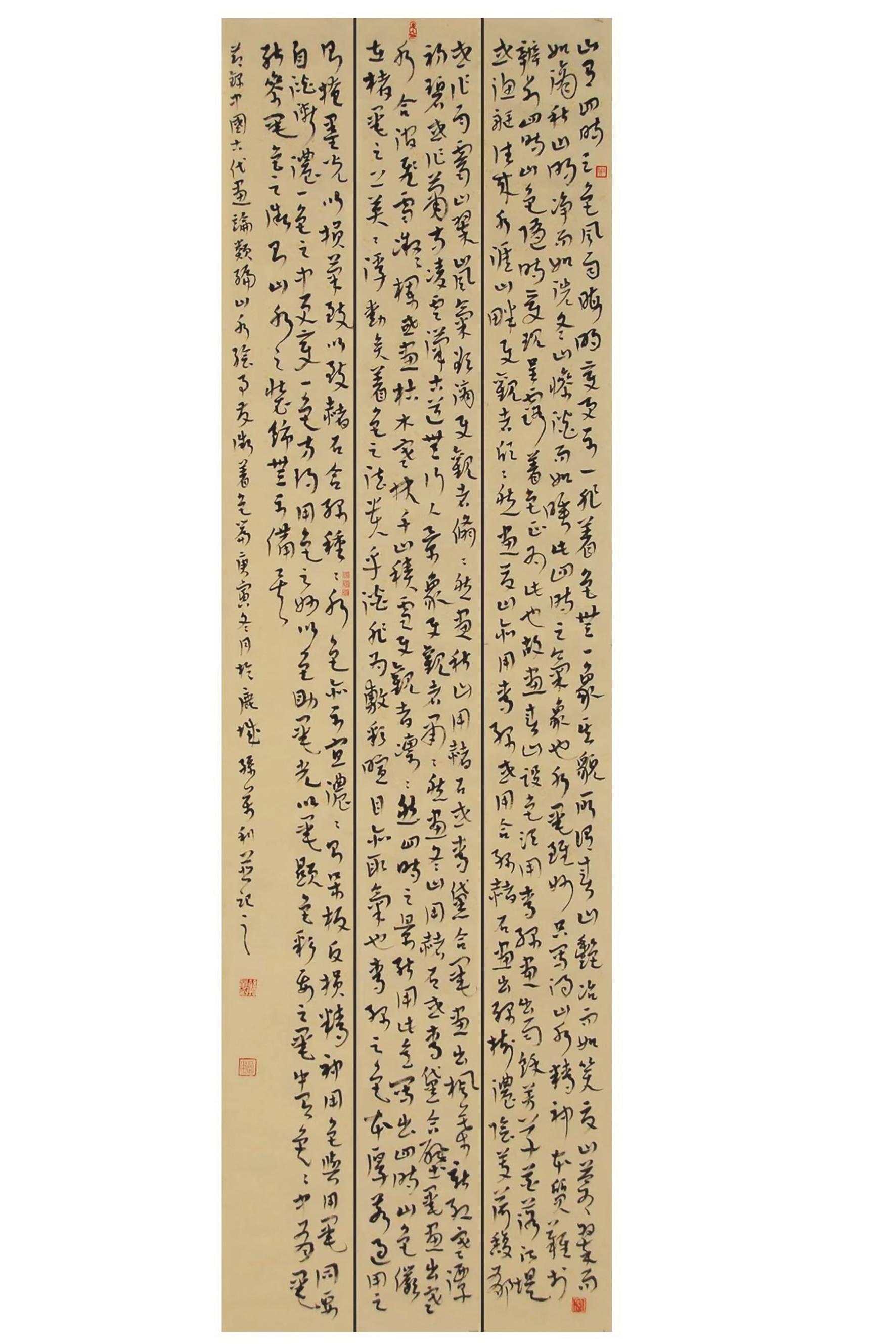 孙万利与书法的缘分,始于年少。他师从著名书法家史守仁,在史老师的悉心指导下,他在楷书、行书、草书领域不断深耕,打下了深厚的功底。他对书法艺术有着天生的敏感和悟性,尤其钟情草书。草书的跌宕郁勃、酣畅淋漓,恰好与他炽热的情感和洒脱的性格相契合。在他的草书中,既能看到血气充盈、韵味横溢的畅快,又能感受到他对书法法度的精准把握,看似率意信手,实则功力至深。孙万利的作品中,线条如灵动的舞者,在纸面上跳跃、交织,形成独特的韵律,每一笔都蕴含着他对书法的热爱和对艺术的执着追求。