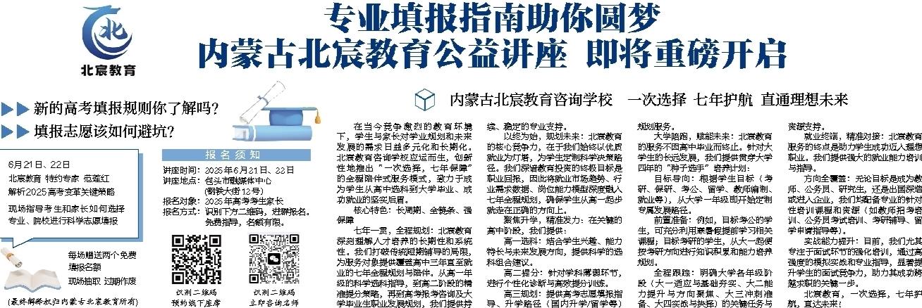 专业填报指南助你圆梦 内蒙古北宸教育公益讲座 即将重磅开启