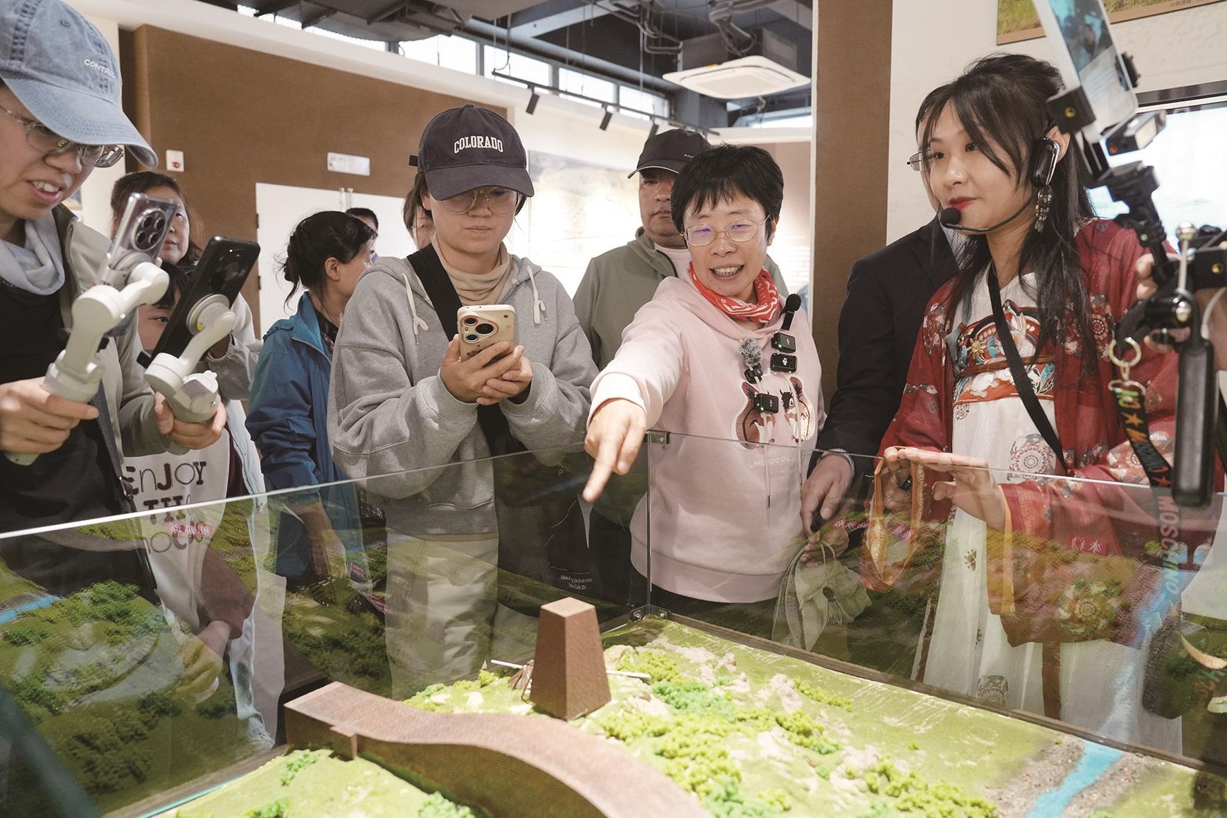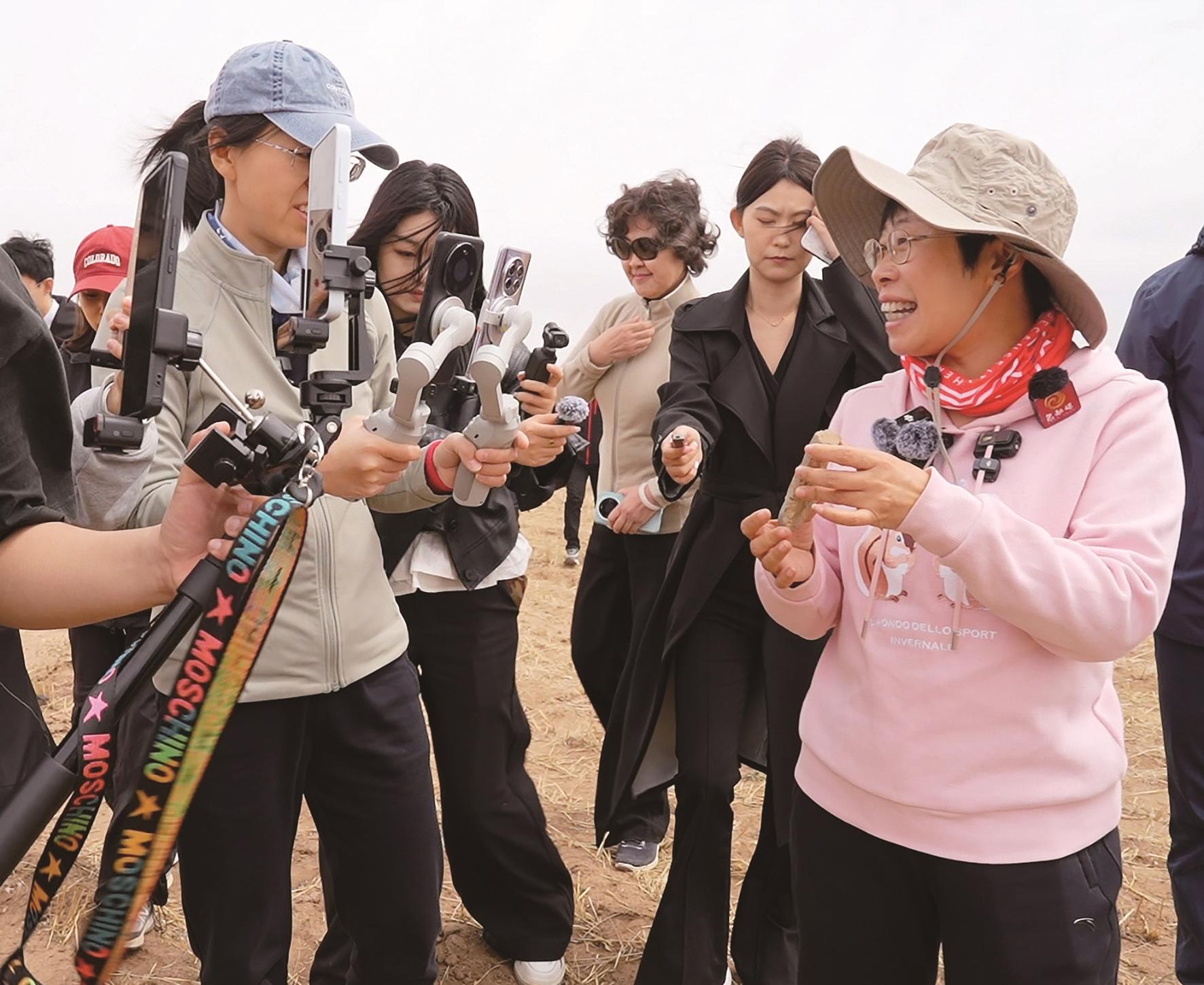 她拿起一块小石头,上面中间有一个小的三角孔洞,讲述起了人文学与地质学在这里的奇妙融合。“从人文方面来说,古代老百姓将这称为‘匈奴剑穿石’,因为这是为了抵抗匈奴修建的长城。实际上当地老师解释这是自然地质形成的破裂。人文学和地质学就这样组合在这块小小的石头中,呈现在我们的文明之中。”这样的讲述,让观众在欣赏秦长城的同时,也深刻体会到了历史的厚重与自然的神奇。