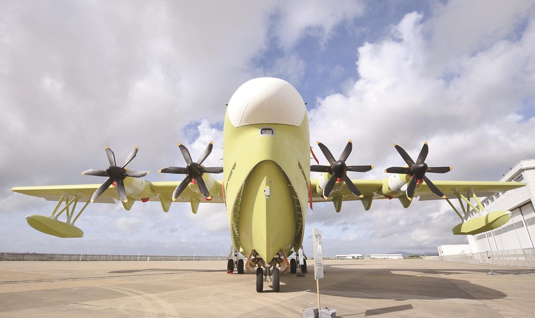 6月11日,在珠海中航通飞华南飞机工业有限公司,现场展示的批量生产的首架AG600飞机。