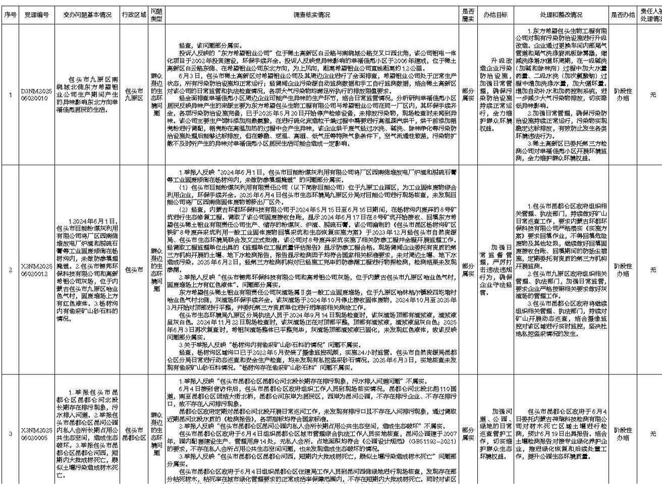 中央生态环境保护督察群众信访举报转办和边督边改公开情况一览表(第6批)