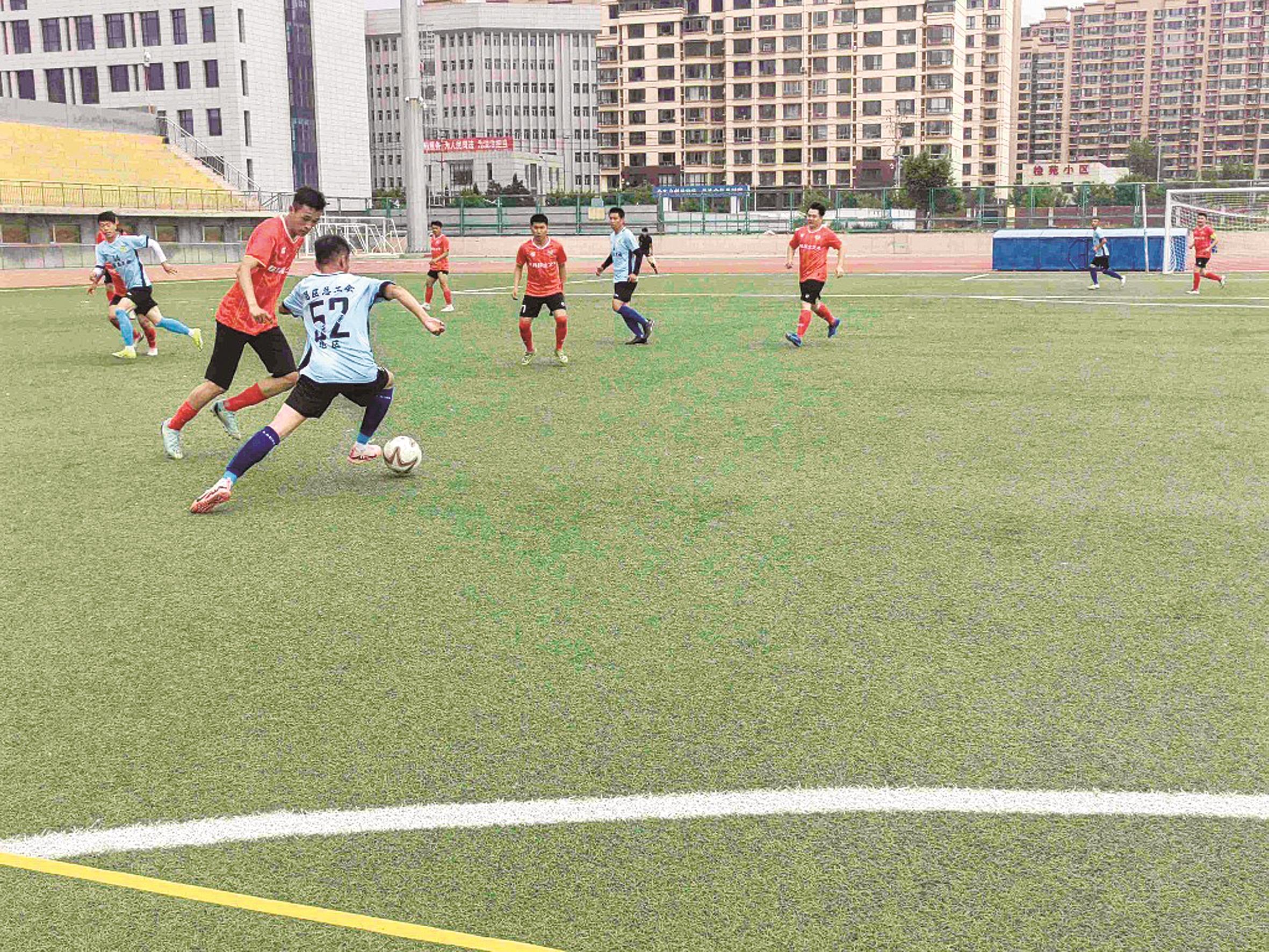 本报讯 6月14日,2025年包头市职工足球系列赛“草原钢城杯”足球赛在内蒙古科技大学足球场开赛。