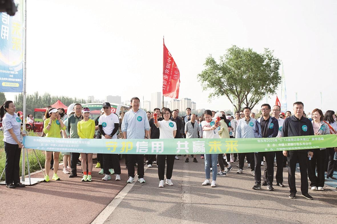 健步同行,营造诚信社会“浓氛围”。为普及征信、信用、诚信相关知识,引导信息主体合理借贷、履约践诺,中国人民银行包头市分行联合中国银行包头分行举办了包头市“守护信用、共赢未来”2025年“6·14信用记录关爱日”宣传暨“信用健步行”活动。活动当天,中国人民银行包头市分行在赛汗塔拉城中草原设立宣传点,通过摆放展板、发放宣传资料、现场咨询等方式,向公众普及征信知识,宣传信用记录的重要性。同时,组织“信用健步行”活动,参与者共同见证启动仪式、联合签署“信用承诺墙”,并沿着指定路线行进,吸引了众多群众参与其中,进一步扩大了宣传影响力。在健步行过程中,还设置了信用知识问答打卡点,参与者通过答题可获得小礼品,增加了活动的趣味性和互动性。此外,中国人民银行包头市分行还联合各金融机构在活动现场设置“征信门诊台”和流动宣传队,开展征信知识和守信理念宣传活动,为公众提供便捷的征信解答服务。此次活动将征信宣传与健康运动相结合,形式新颖、内容丰富,营造了浓厚的信用宣传氛围,提升了公众维护良好信用记录的意识和能力。