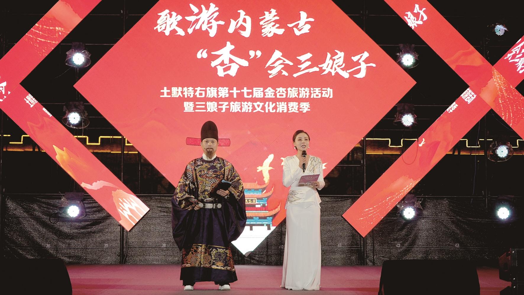 本报讯 近日,土右旗在美岱召景区举办第十七届金杏旅游活动暨三娘子旅游文化消费季活动,为市民带来一场融合文化和旅游的盛宴。