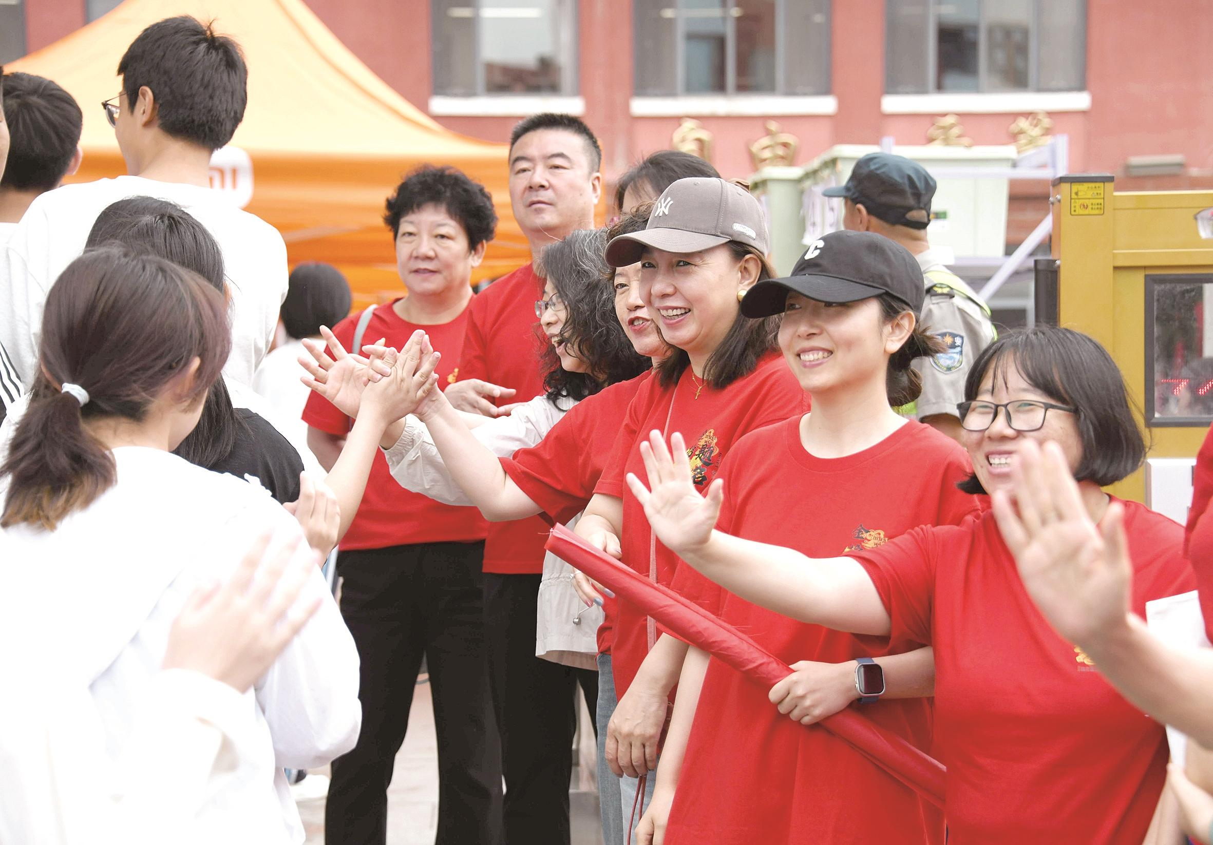 不远处,包头市第四十八中学的送考教师组成了一片红色的海洋。刘向忠老师整理着鲜艳的红色送考服解释道:“红色代表着热情与希望,我们想用这样的方式为孩子们注入信心和力量。愿他们带着这份祝福,在考场上自信作答、从容应对,考入自己理想的高中。”