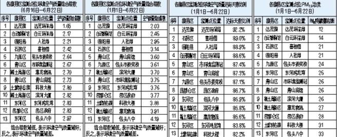 包头市各旗县区监测点位环境空气质量公示