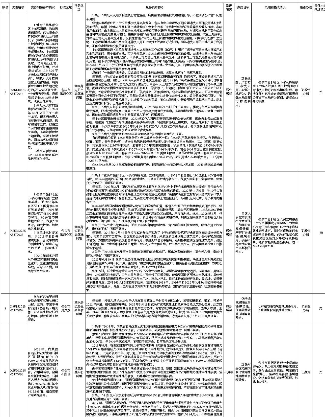 中央生态环境保护督察群众信访举报转办和边督边改公开情况一览表(第21批)