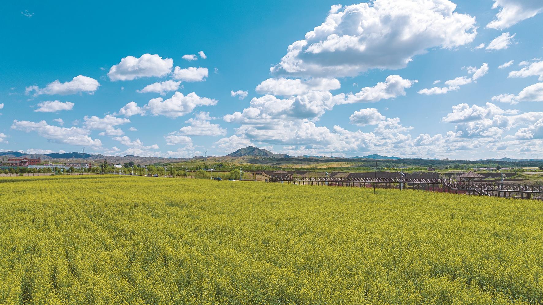 “这真是太美了!”近日,在青山区兴胜镇东达山度假村,游人看到一望无际的油菜花,不禁发出感慨。黄花、村落、蓝天、白云相映成趣,勾勒出了一幅色彩明艳的乡村画卷。 记者 李强 摄