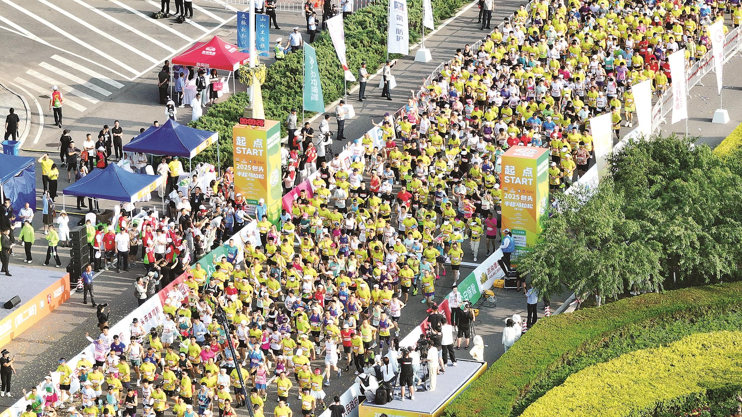 7月13日上午7:30,2025包头半程马拉松(第二站)在土默特右旗敕勒川文化公园开跑,共有来自法国、肯尼亚等国家和全国各地的近万名跑友参赛。