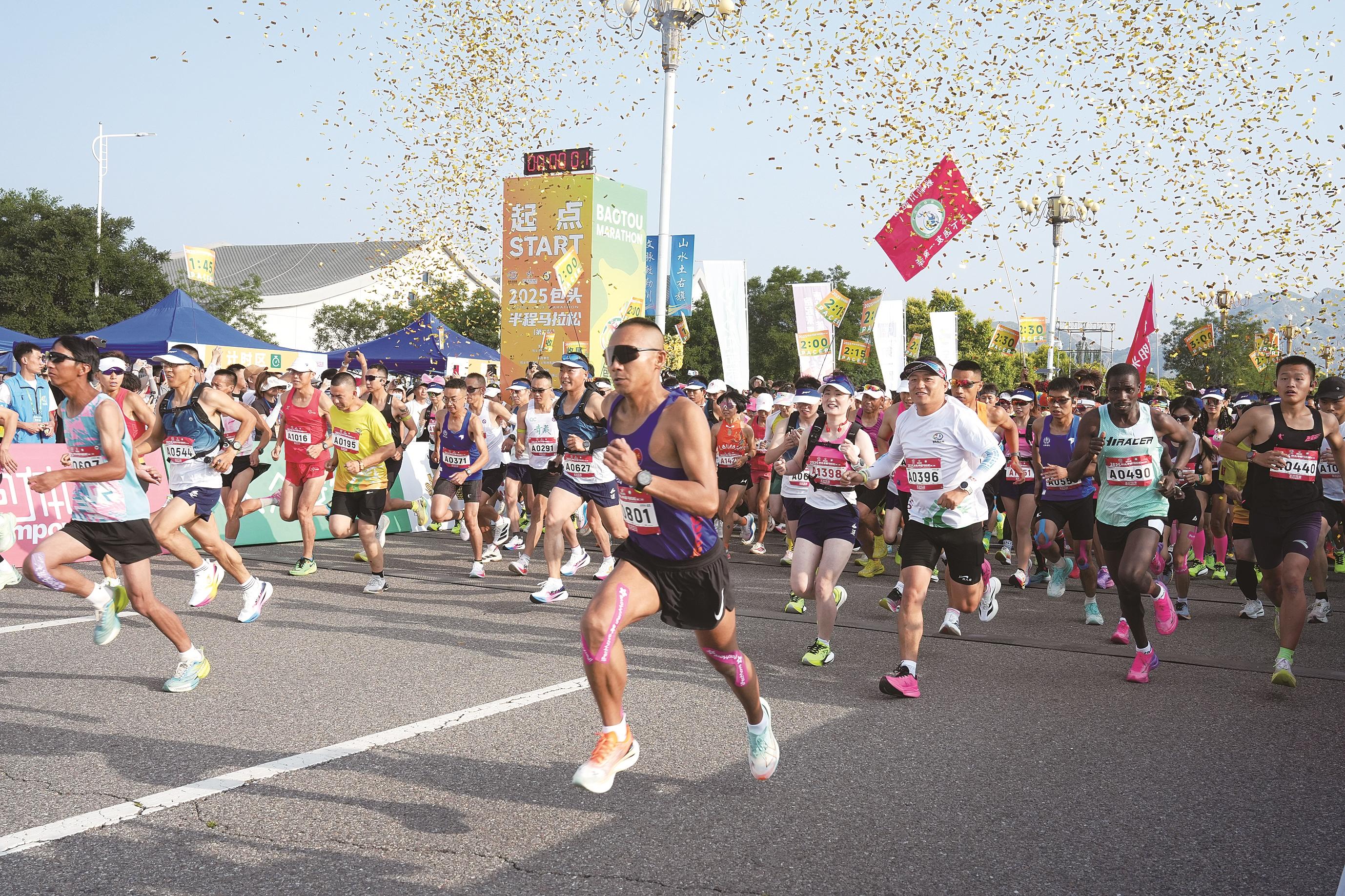 7月13日上午7:30,2025包头半程马拉松(第二站)在土默特右旗敕勒川文化公园火热开赛。共有来自法国、肯尼亚等国家和全国各地的近万名跑友参赛。