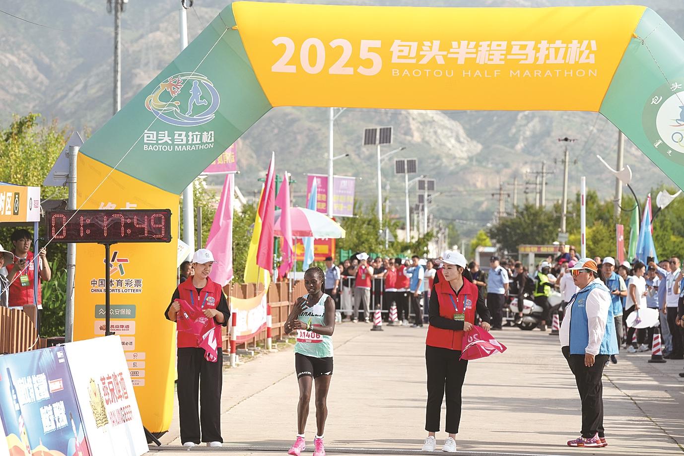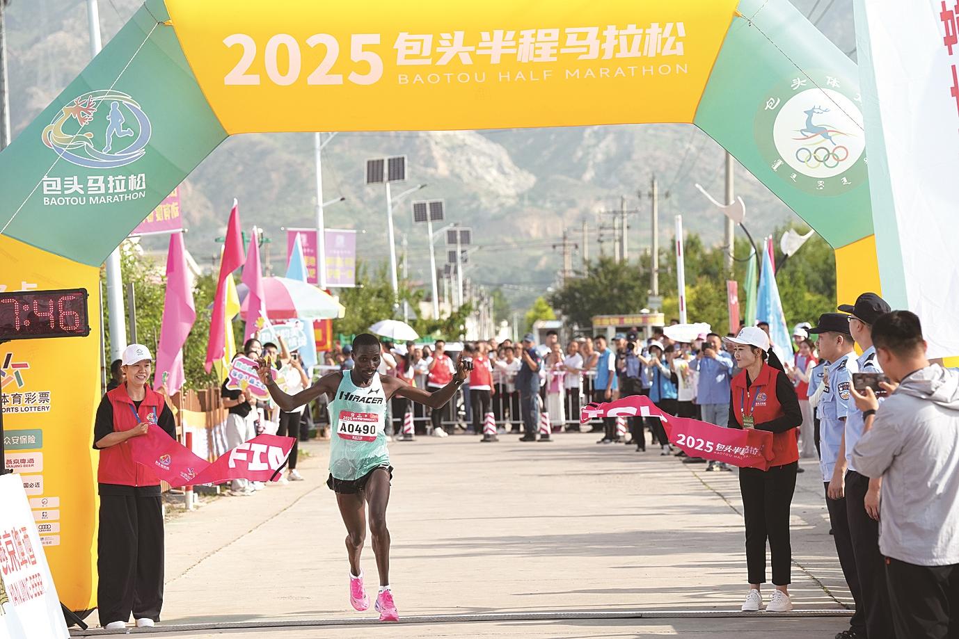 撞线后,男子组冠军来自肯尼亚的选手Vincent kipchumba Toroitich表示:“这是我第一次来包头,今天很开心能取得这个成绩,感觉包头非常好。”