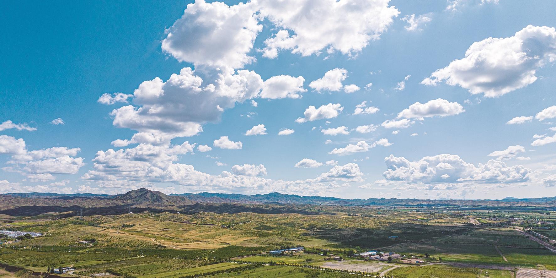 这里是包头!蓝天白云下的阴山山脉,巍峨雄浑,绘就大气磅礴的自然长卷。?