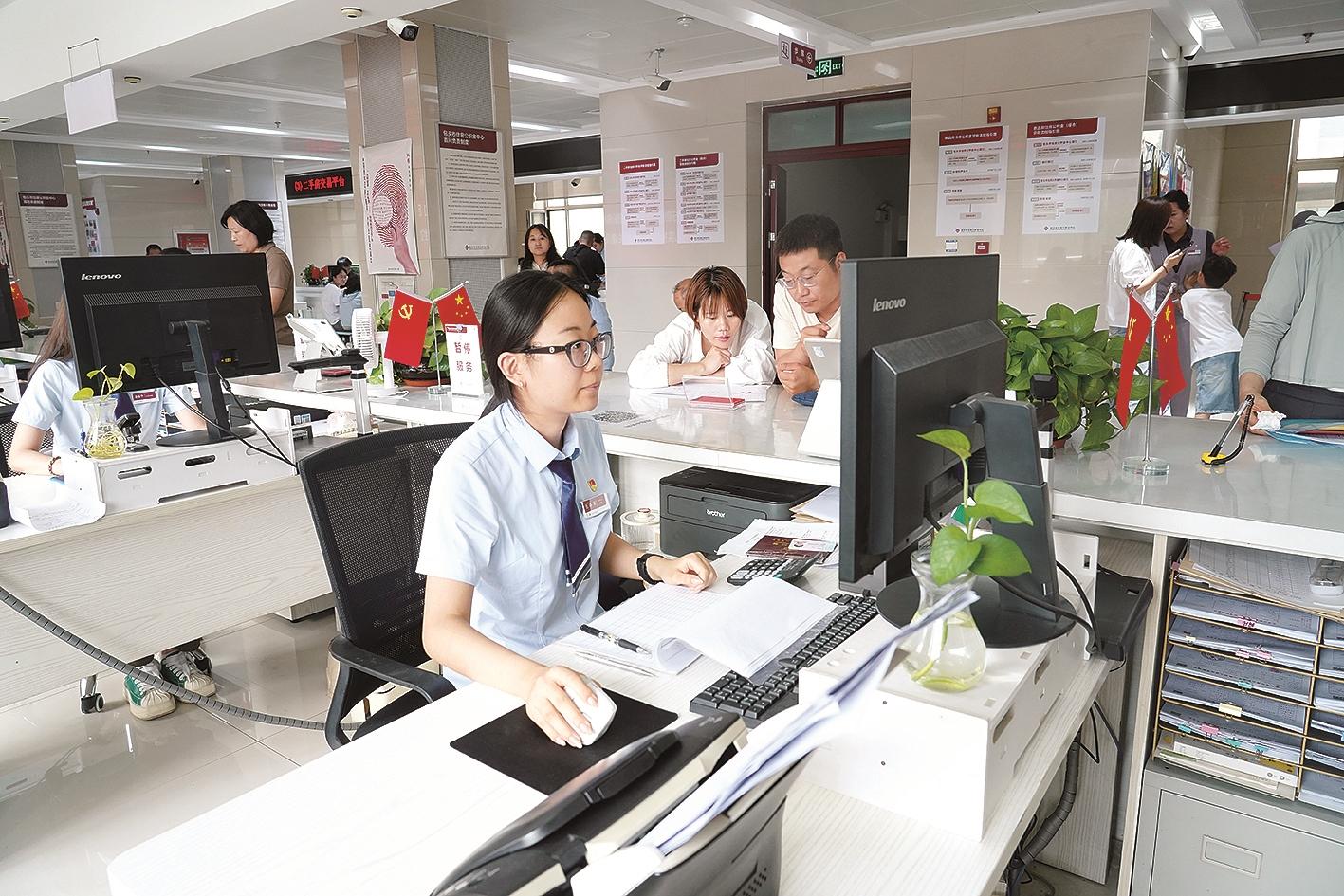 市住房公积金中心高新区受理部工作人员正在办理业务。