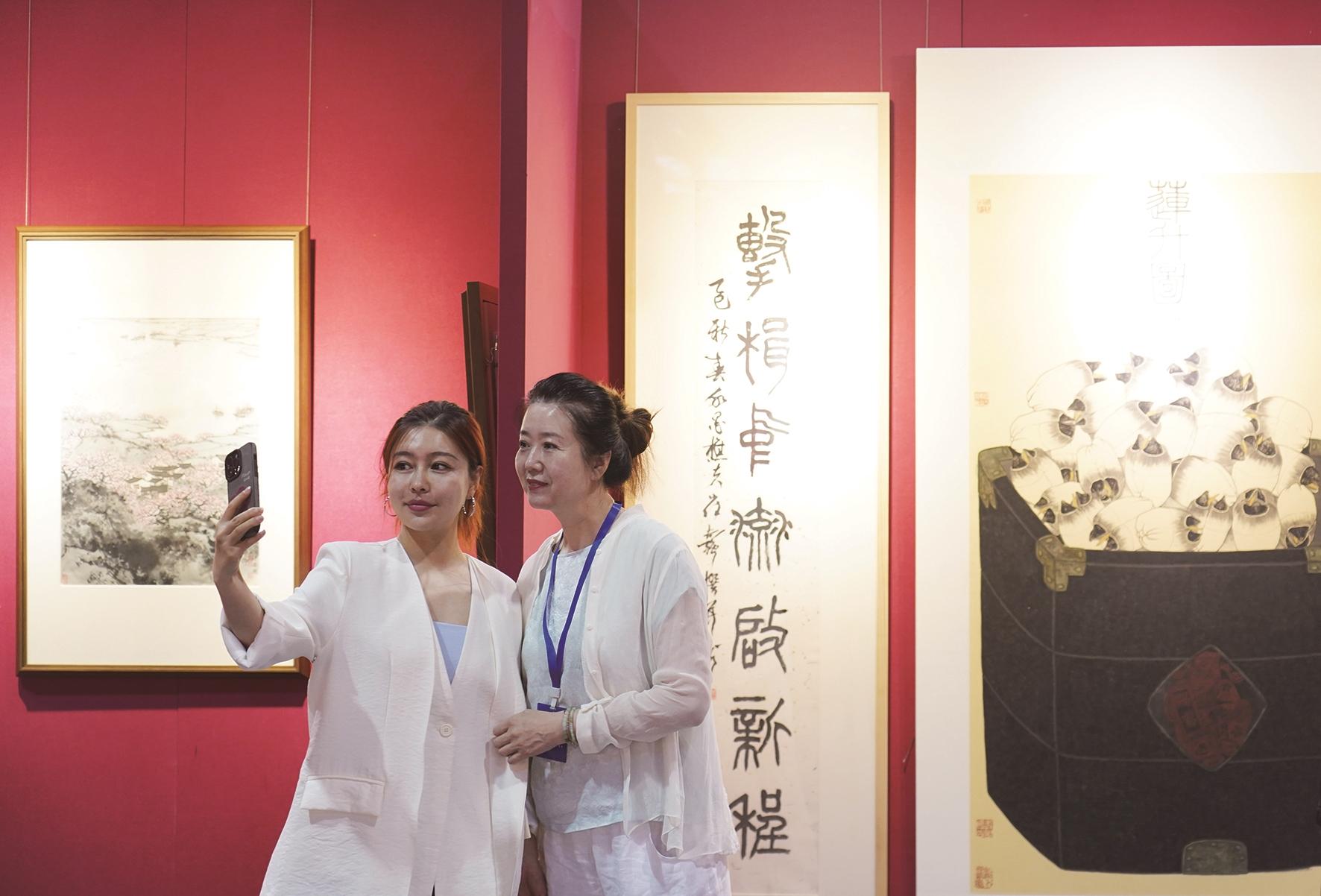 文旅消费火热的同时,文化体验场景也成为暑期消费的新亮点。包头国际会展中心内,艺术博览会的展厅里人头攒动。一幅油画前,来自上海的游客李女士正对着画作与手机里的实景照片比对:“最近几天参观游玩了包头不少景区,今天看画更有感觉了。”
