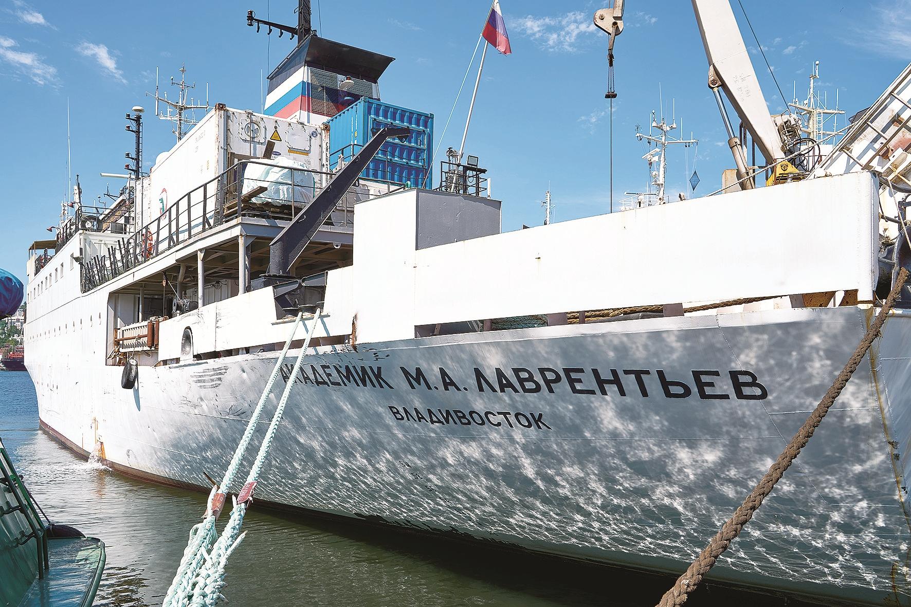 这是7月22日在俄罗斯符拉迪沃斯托克拍摄的“拉夫连季耶夫院士号”科考船。