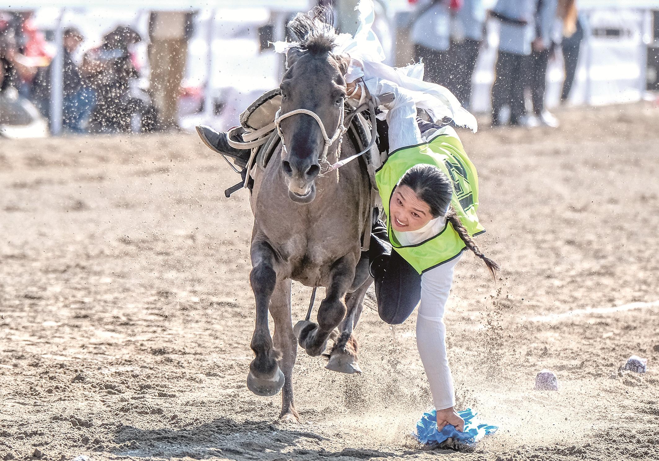 当日,内蒙古自治区第十一届少数民族传统体育运动会跑马拾哈达比赛个人赛在赤峰市巴林右旗举行。