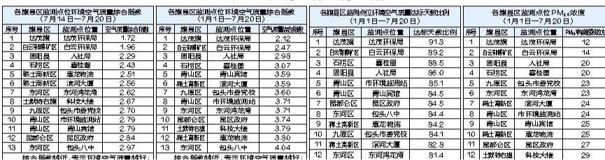 包头市各旗县区监测点位环境空气质量公示