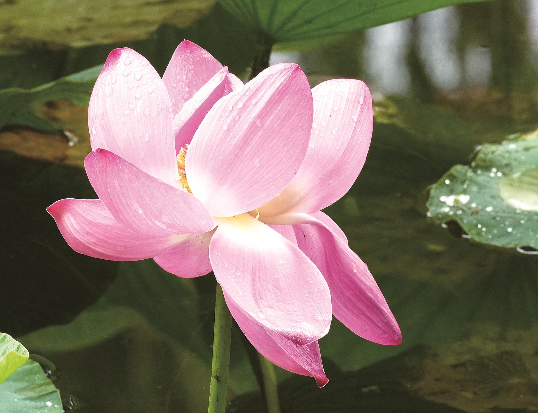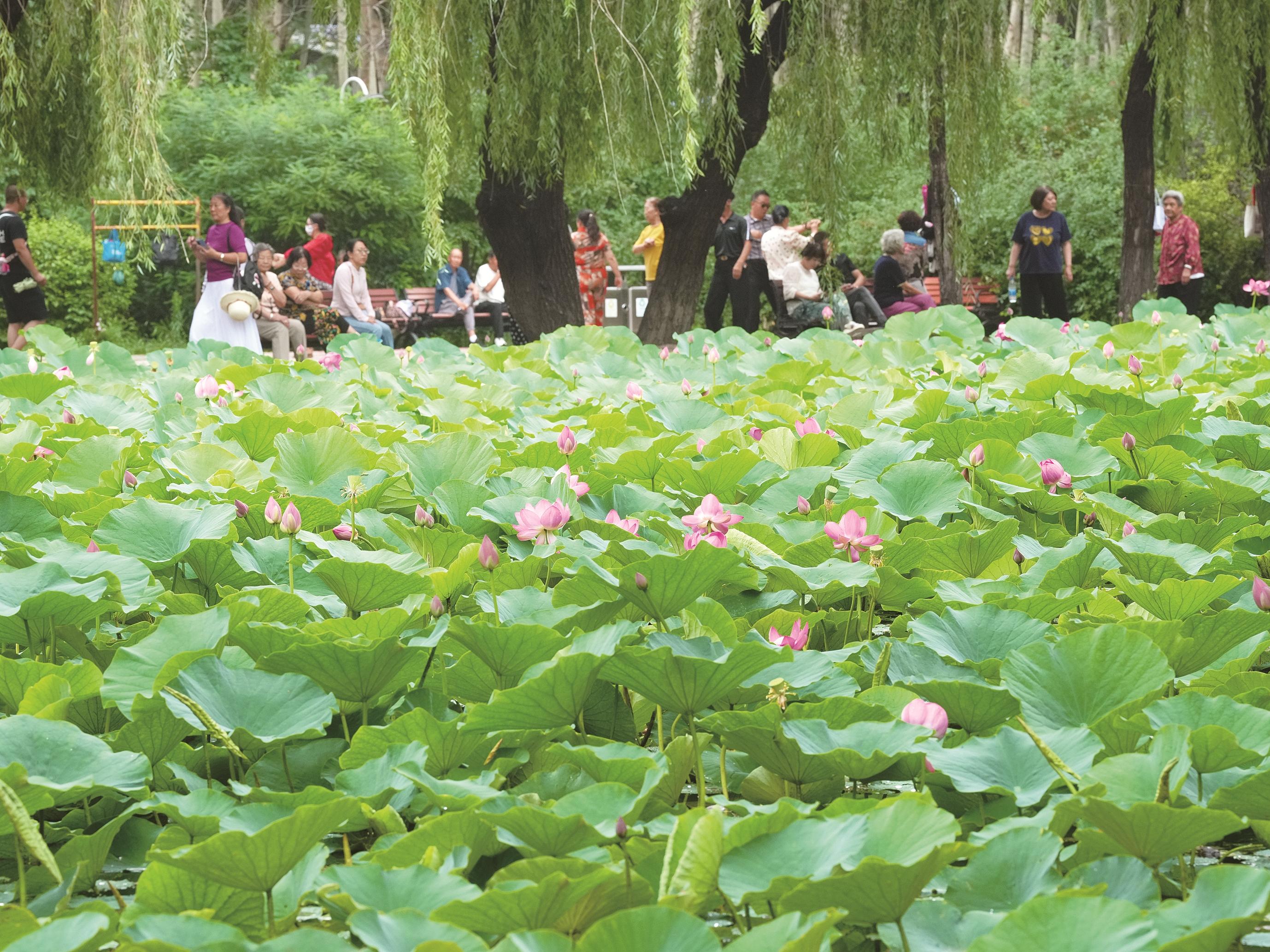 7月25日,我市阿尔丁植物园在雨后迎来如画景致。园内荷花池里,荷花或含苞待放,或娇艳盛开。雨珠晶莹剔透,在荷叶与荷花上滚动,似灵动的精灵。清新的空气与荷香交织,吸引众多游人驻足观赏、拍照留念。 记者 李强 摄
