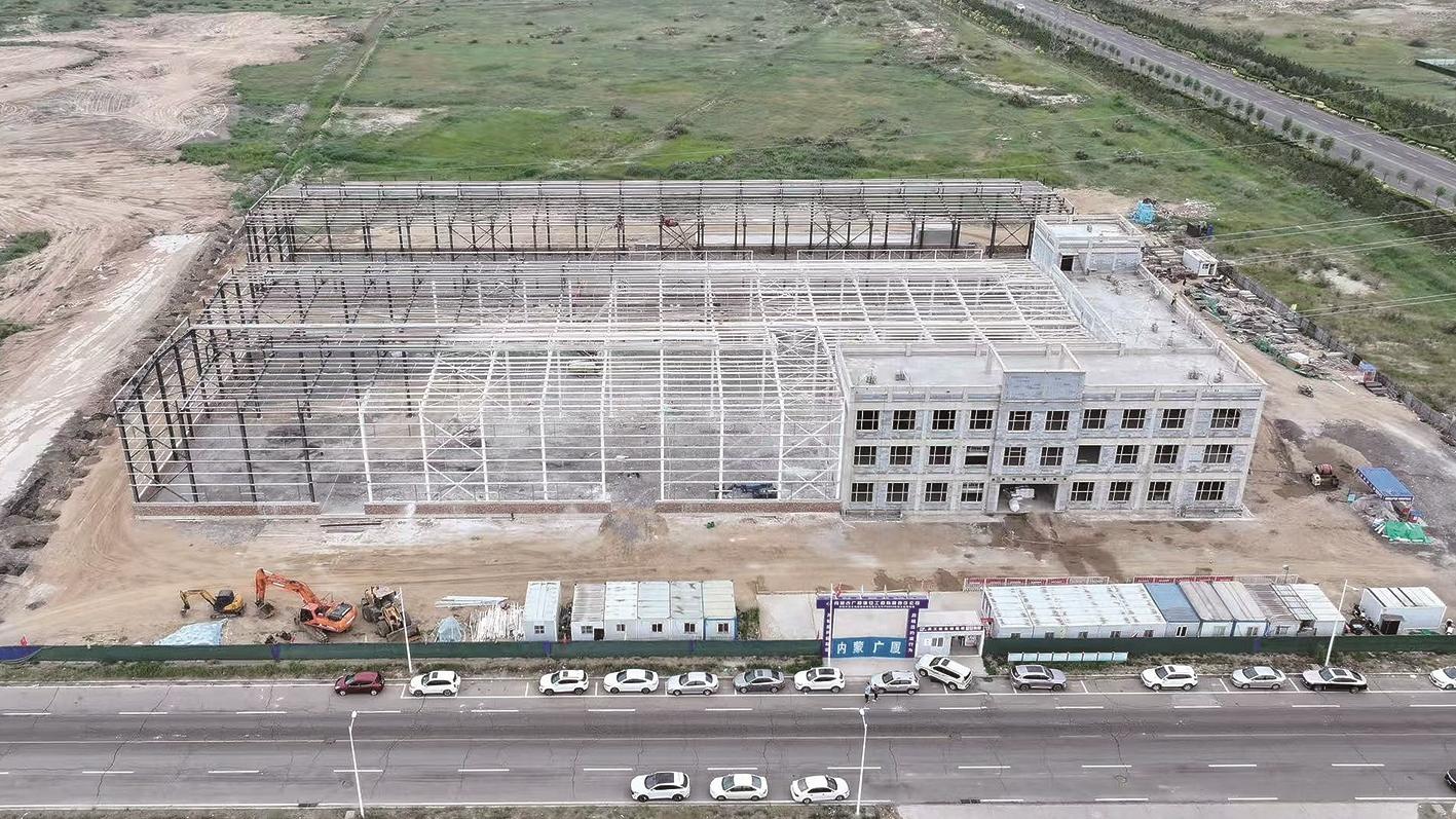 形象进度:项目于2025年4月开工,办公楼、厂房主体已全部完成,正在进行外立面装修以及设备购置,计划2025年10月竣工投产。