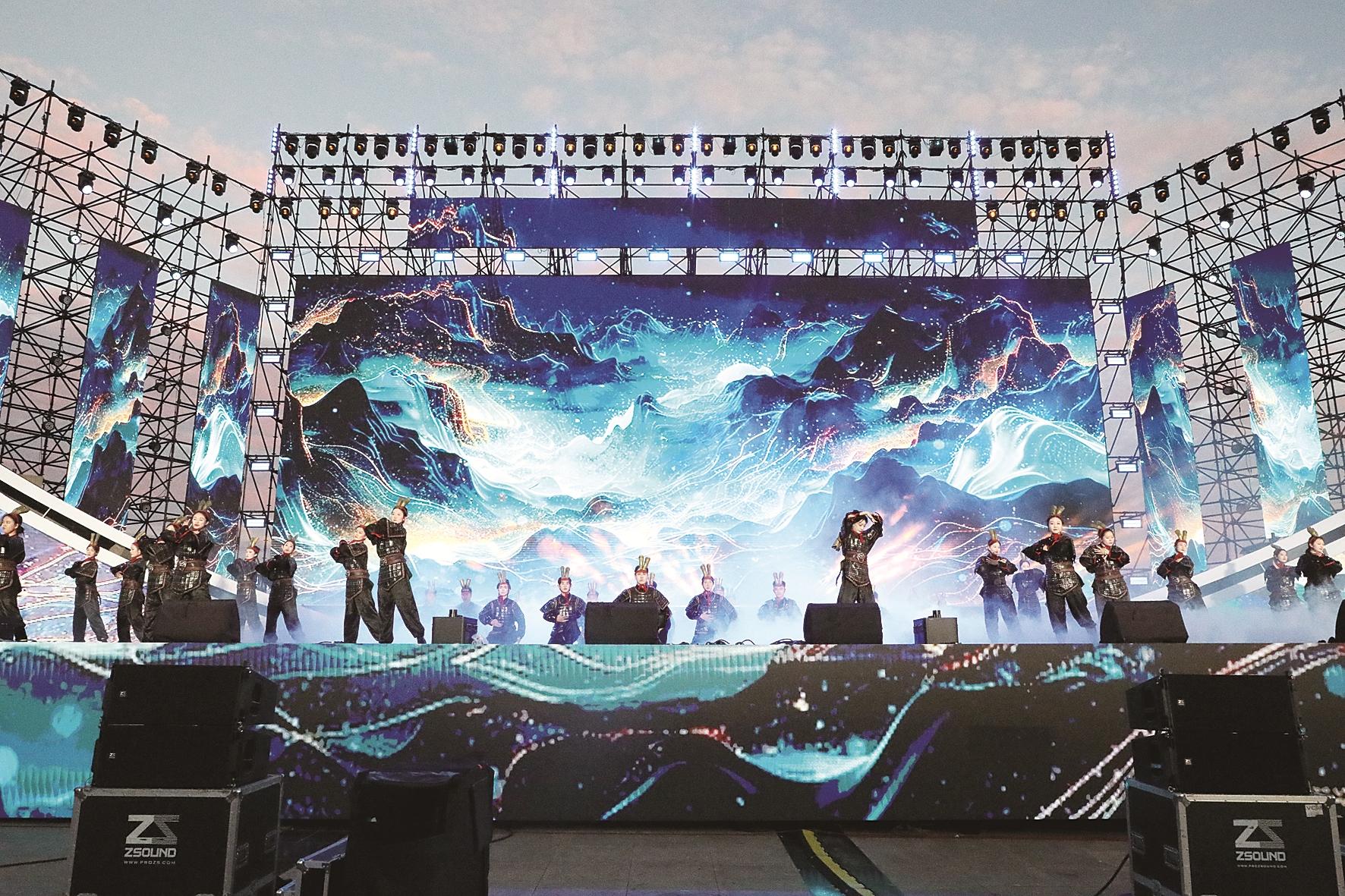 晚会以大秦将军蒙恬为主线贯穿全场,以固阳秦长城为文化原点,分文明初铸·千秋守望、烽燧芪迹·古今共耀、丝路新章·梦圆固阳等四个篇章,形式有马头琴齐奏、情景朗诵、民歌民舞、呱嘴、音乐快板、二人台等,科技舞《未来固阳》将整场晚会气氛推向高潮。结尾烟花秀表演,展现出固阳从“边塞戍地”到“黄芪之乡”的时代蜕变,推动文旅深度融合。这场盛宴诠释出“团结统一、自强不息、守望和平、包容并蓄”的长城精神,打造了一场“一眼千年、一眼万里”的沉浸式文化盛宴。