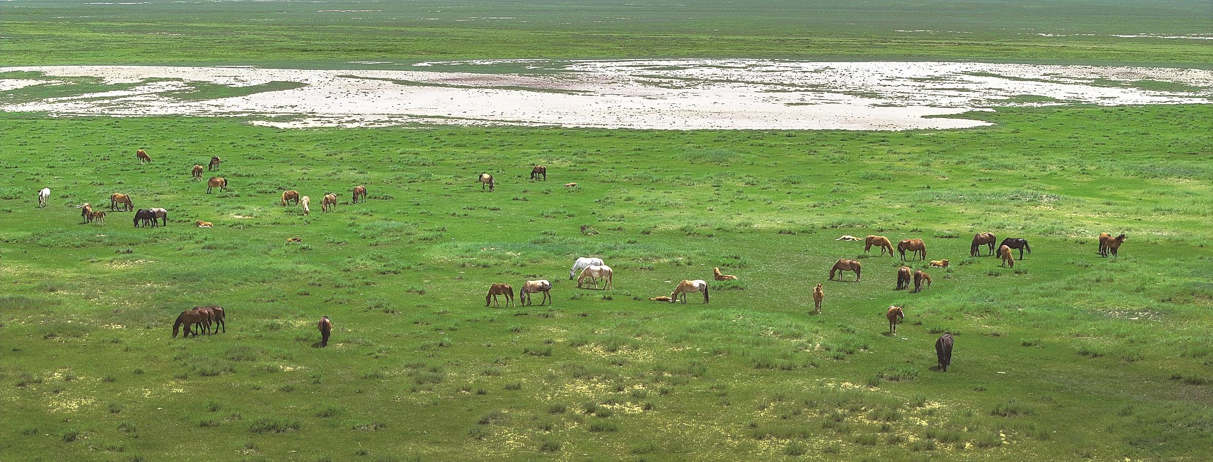 今年夏季的达茂草原雨水丰沛,草长势极好,如绿毯铺展。骏马或悠闲觅食,或肆意驰骋,在这片滋养的天地里,尽显生机与活力,绘就自然馈赠下的灵动牧歌。