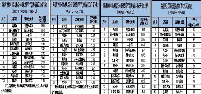 包头市各旗县区监测点位环境空气质量公示