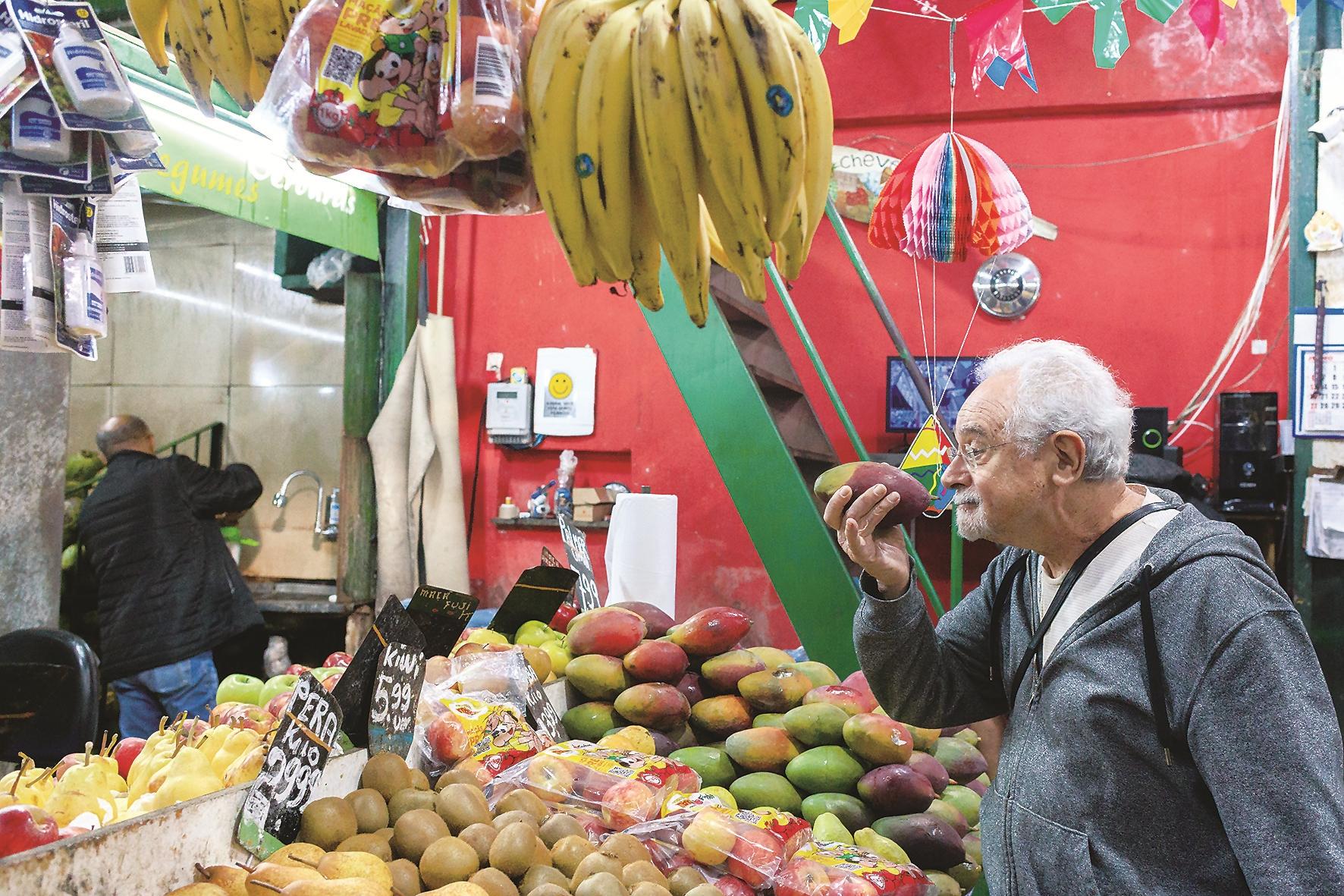 7月29日,一名男子在巴西里约热内卢一处水果摊挑选水果。