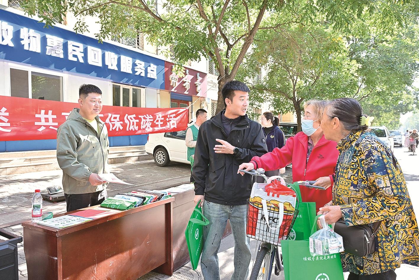 本报讯 近日,青山区首个“可回收物惠民回收服务点”在望园南道建成并投入使用。工作人员现场开展了宣传活动,以此来提升居民环保意识,构建绿色、低碳、循环的生活方式。