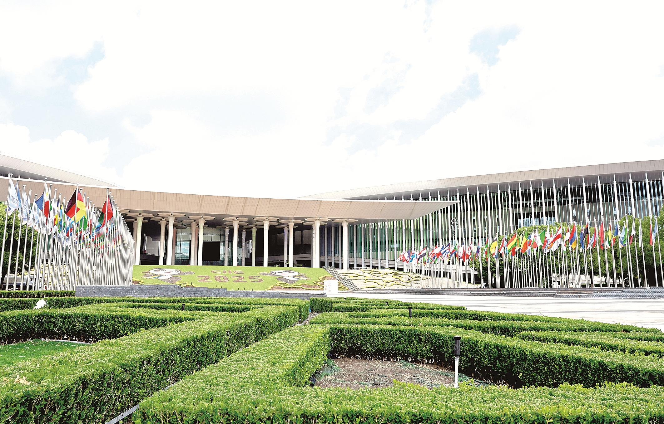 从空中俯瞰,进博会举办场所国家会展中心(上海)的外形如同一棵“四叶草”,静待着八方宾客。