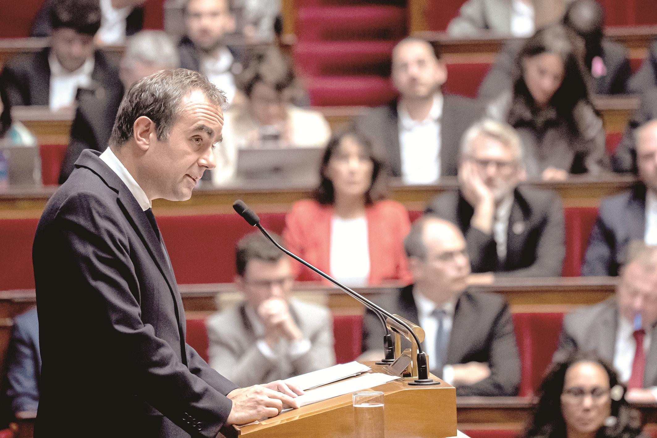 10月14日下午,法国总理勒科尔尼在位于法国巴黎的国民议会发表施政方针演讲。新华社发(奥雷利安·莫里萨尔 摄)
