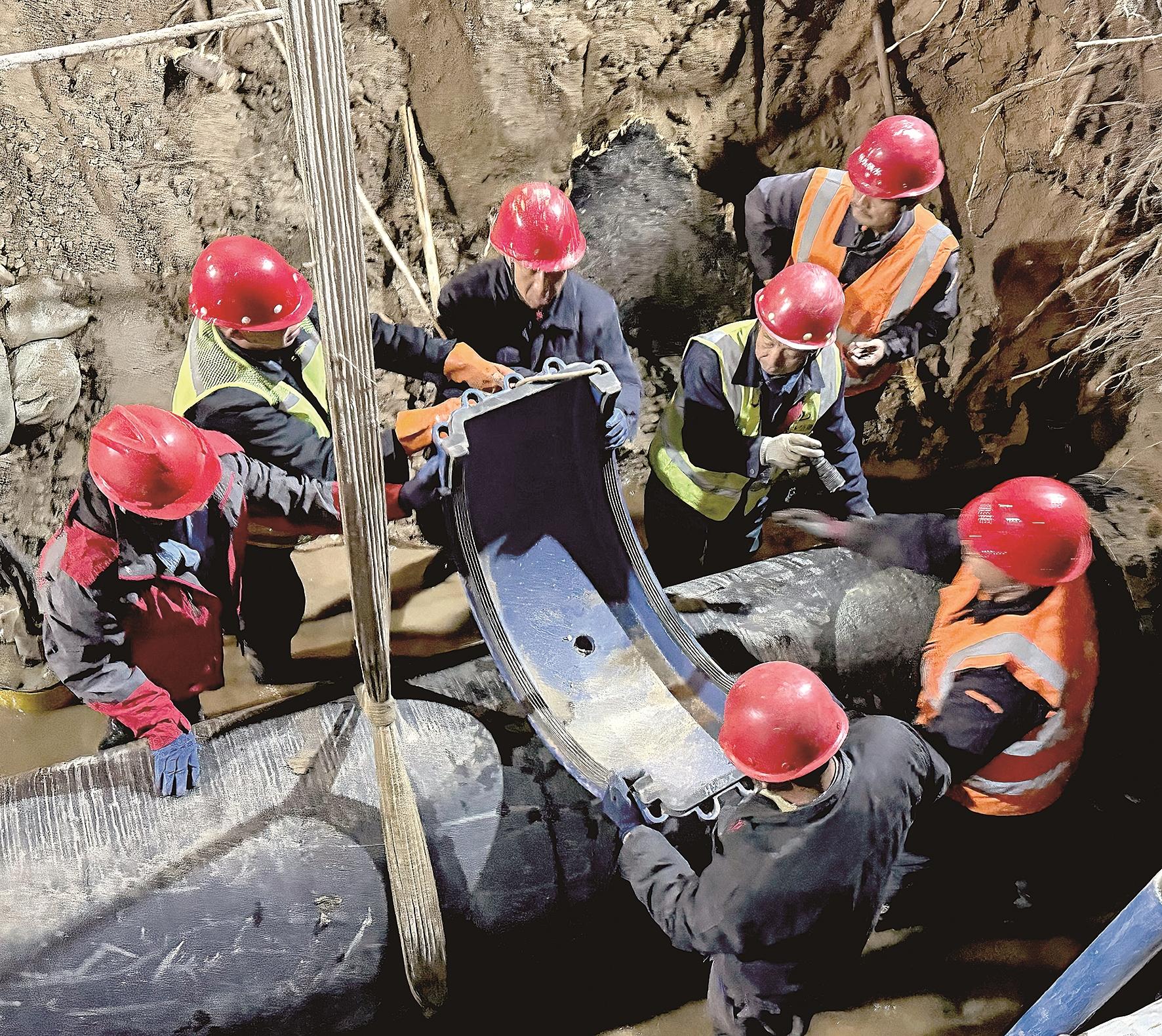 夜色渐深,气温持续下降,抢修现场却灯火通明、热火朝天。挖掘、排水、清理、焊接……每一个环节都争分夺秒,井然有序。党员干部冲锋在前,带头跳入泥水中作业;其他维修人员轮番上阵,困了就在工程车里眯一会儿,饿了就蹲在路边匆匆扒几口盒饭。顶风冒雨的两个日夜,他们心中只有一个信念:早一分钟修复,市民就早一分钟恢复正常用水,城市秩序就早一分钟恢复。