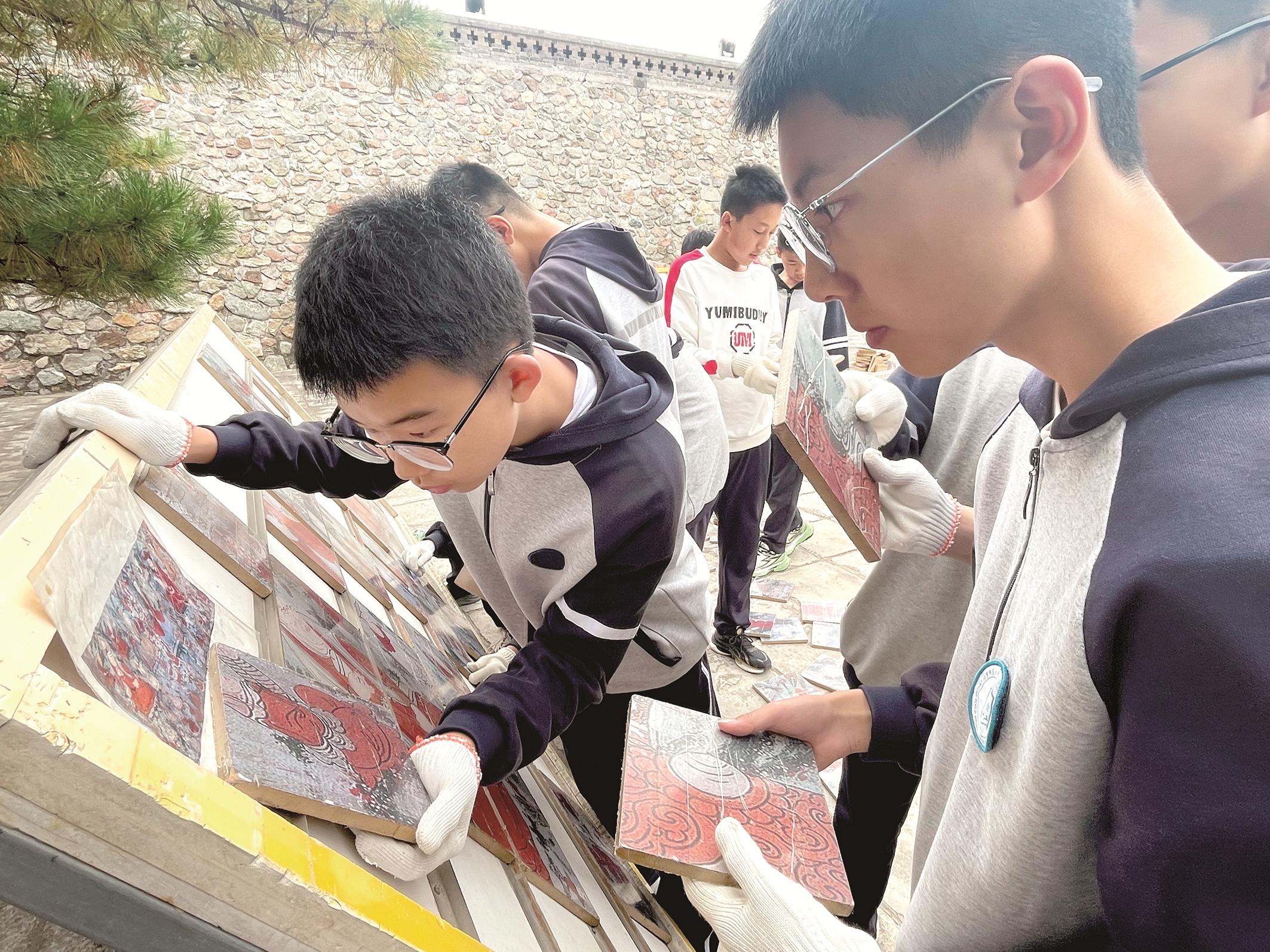 午后,师生一行走进美岱召旅游景区,沉浸于浓厚的历史文化氛围中。同学们进行了壁画拼图活动与传统射箭体验。初二学生白悠然在体验后表示:“射中靶心时特别有成就感。这次活动让我对家乡的历史文化有了更真切的了解。”