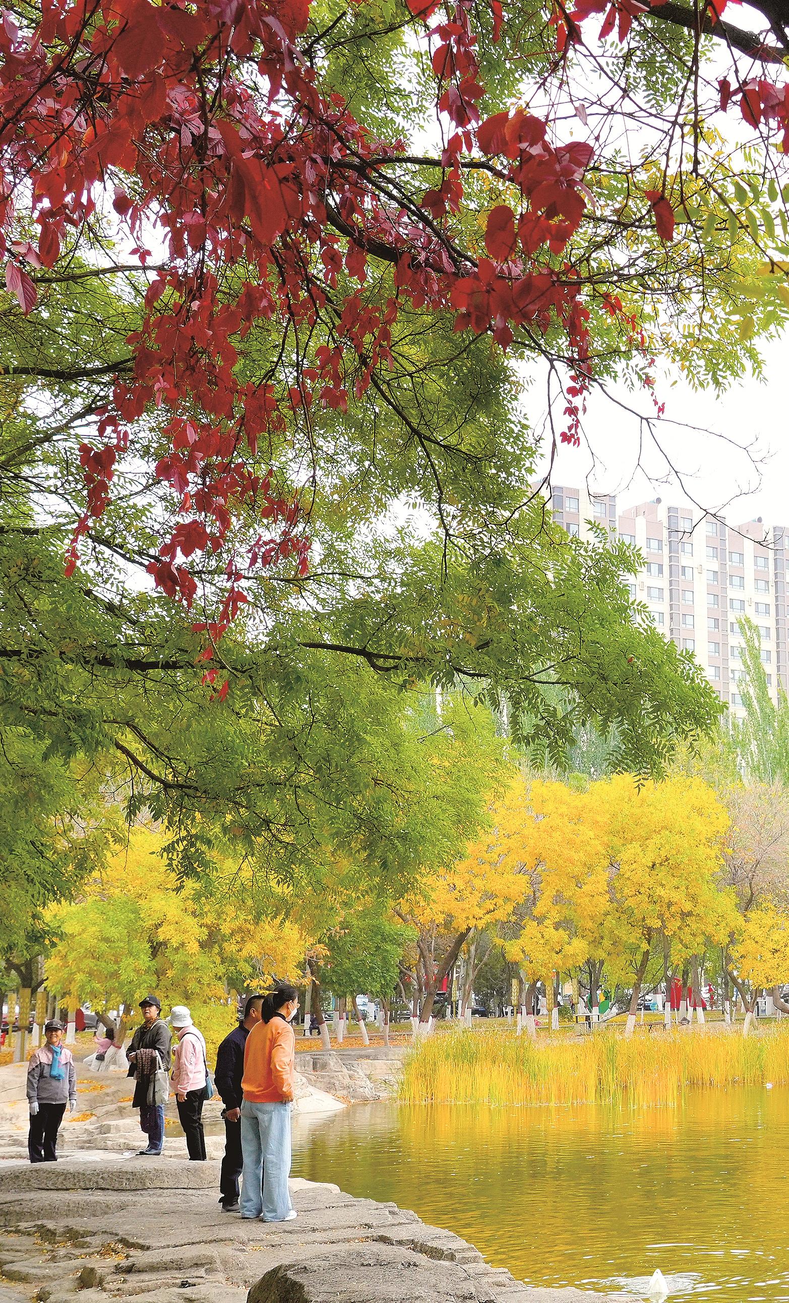 锦林公园的秋则藏着几分灵动野趣,把秋日的氛围拉满。公园深处,不知名的树木大片的红、大片的黄,色彩斑斓、轻轻摇曳,像是在诉说秋日的私语。常有摄影爱好者举着相机,捕捉光影瞬间。