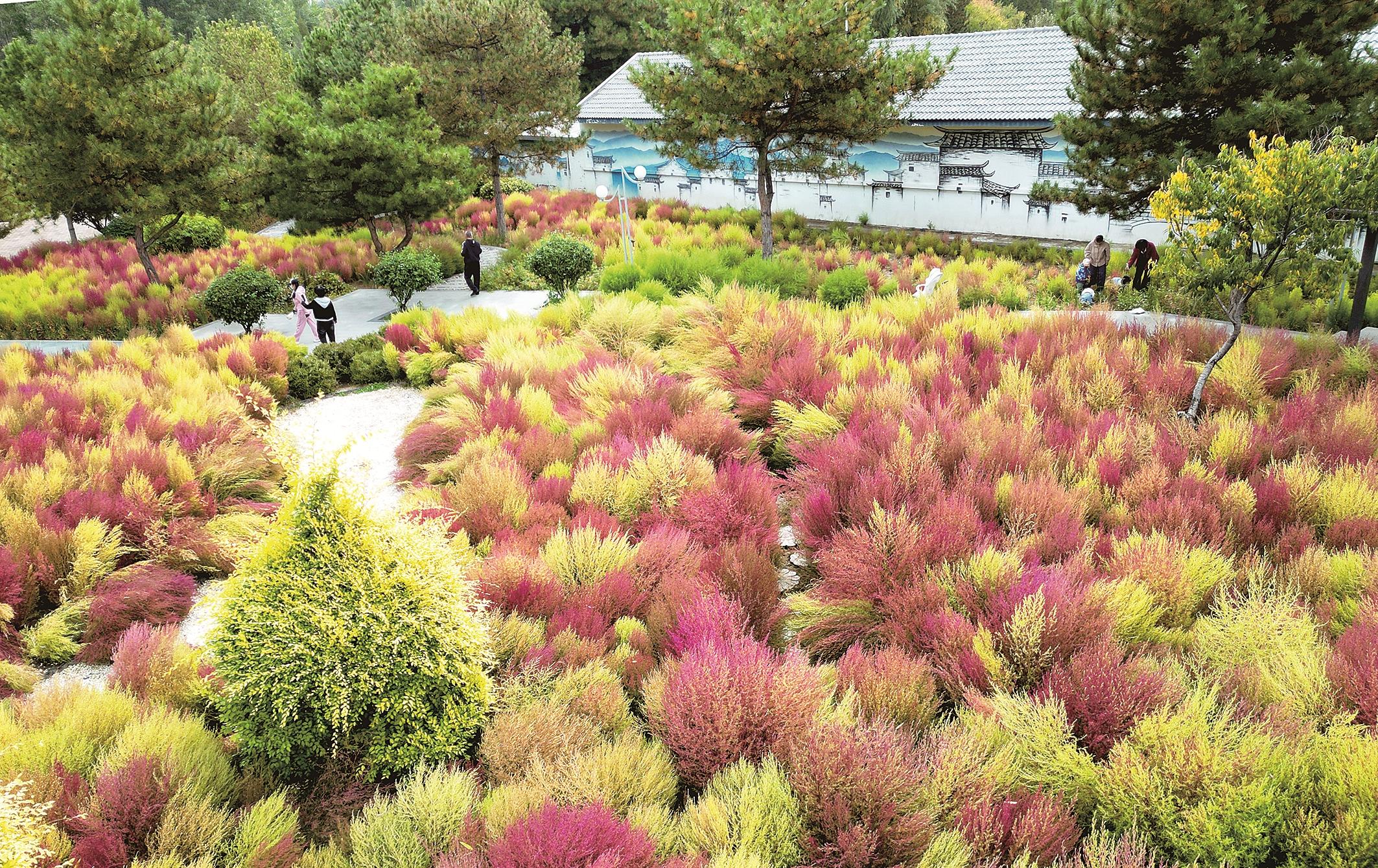 苏雅拉游园另有一番雅致。这里的秋有几分小家碧玉般的温婉,几株倔强的花朵顶着秋霜绽放,玫红、鹅黄点缀在枯黄的草丛间。漫步园中,听风吹过树叶的轻响,满心都是惬意。