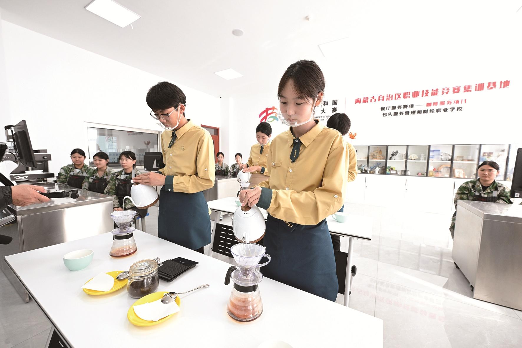 10月21日,包头服务管理和财经职业学校的学生们正在认真学习专业技能。据了解,该校全面推进职普融通、产教融合协调发展,依托“职业教育+普高教育”模式,创新形成了包头市乃至自治区首家“分流分段培养,多元融合发展”办学特色的学校,为学生提供更加多元化的学习路径和发展空间。