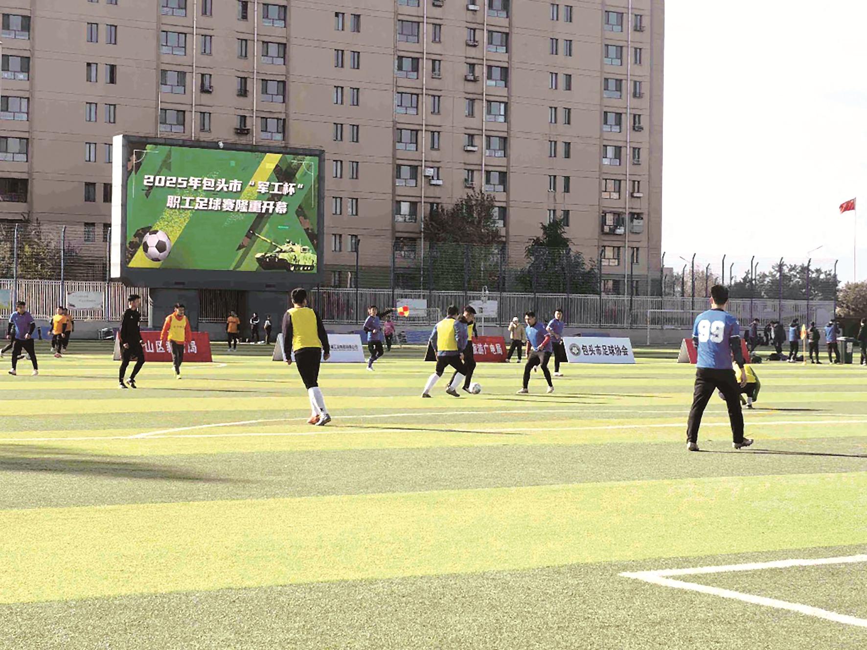 本报讯 10月25日,由市总工会、市足球协会主办的2025年包头市职工足球系列赛“军工杯”职工足球赛在包头松石学校开赛。
