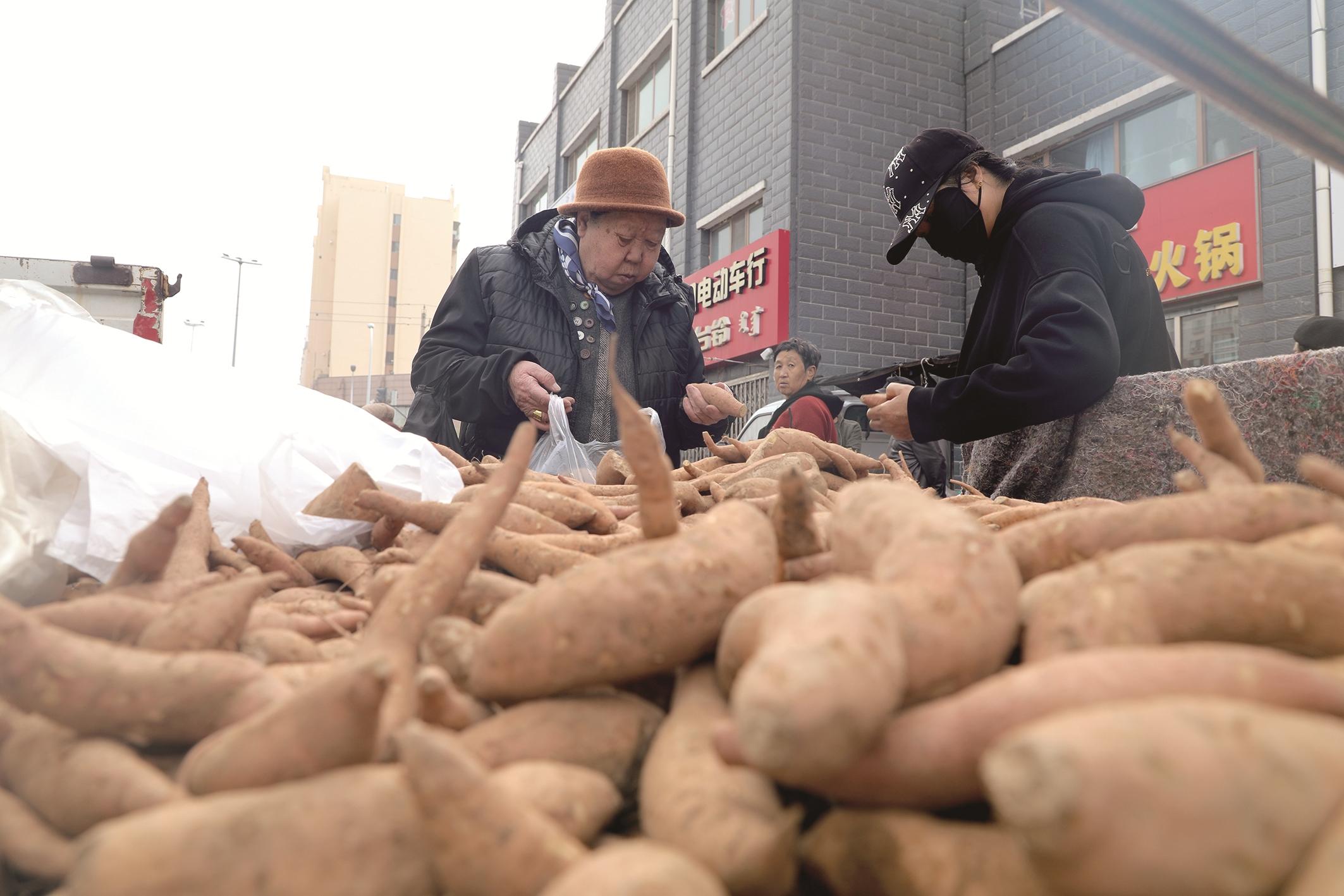 “每年这时候不买点儿大白菜、大葱和土豆,心里就没着没落的。”正在挑选白菜的东河区杨圪塄街道南六区居民李大爷熟练地捏着白菜帮。在他身后,小推车上已堆成了“小山”。对他而言,囤秋菜是几十年来雷打不动的习惯,是迎接冬天的“仪式感”。“以前物资不丰富,囤秋菜是为了过冬。现在条件好了,冬天什么菜都能买到,但还是要囤。孩子们总说我,可我觉着,闻着阳台上白菜的味道,看着窗外晾着的大葱,这才叫过日子,才有家的烟火气。”