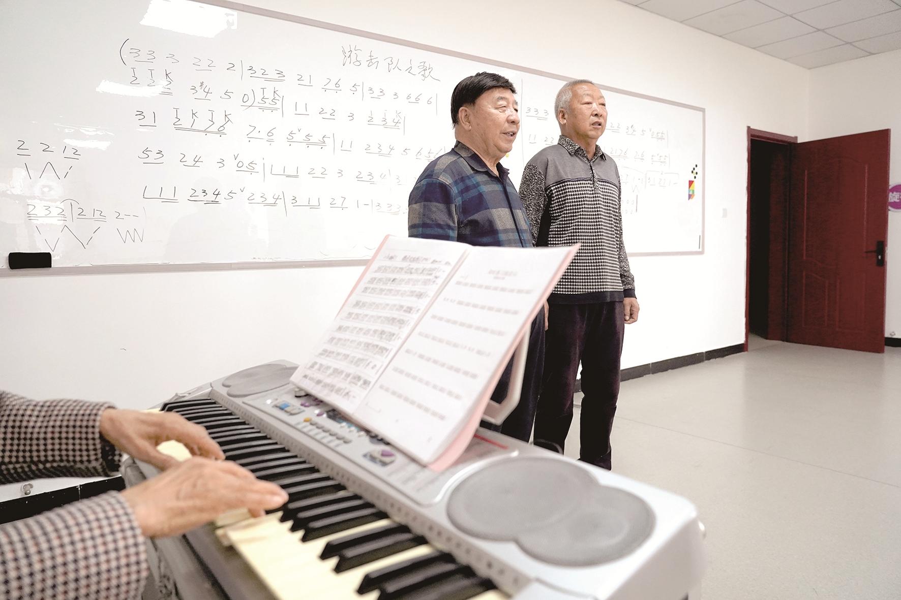每周三下午,九原区青松立交桥下的党群服务中心总是格外热闹。师存义早早来到排练场,调试音响、摆放乐谱、准备茶水,每一个细节都安排得井井有条。“年轻时在保卫科养成了提前准备的习惯,现在搞文艺活动也一样。”他笑着告诉记者,自从退休后加入到七彩锦溪艺术团,他的生活比上班时还要忙碌。在他和艺术团团长许禄的配合与带领下,艺术团从最初的十几人发展到如今的一百多人。没有专业背景的他,靠着对音乐的热爱和一股韧劲,自学乐理知识、研究发声技巧。为了一个节拍的准确,他可以反复练习到深夜。