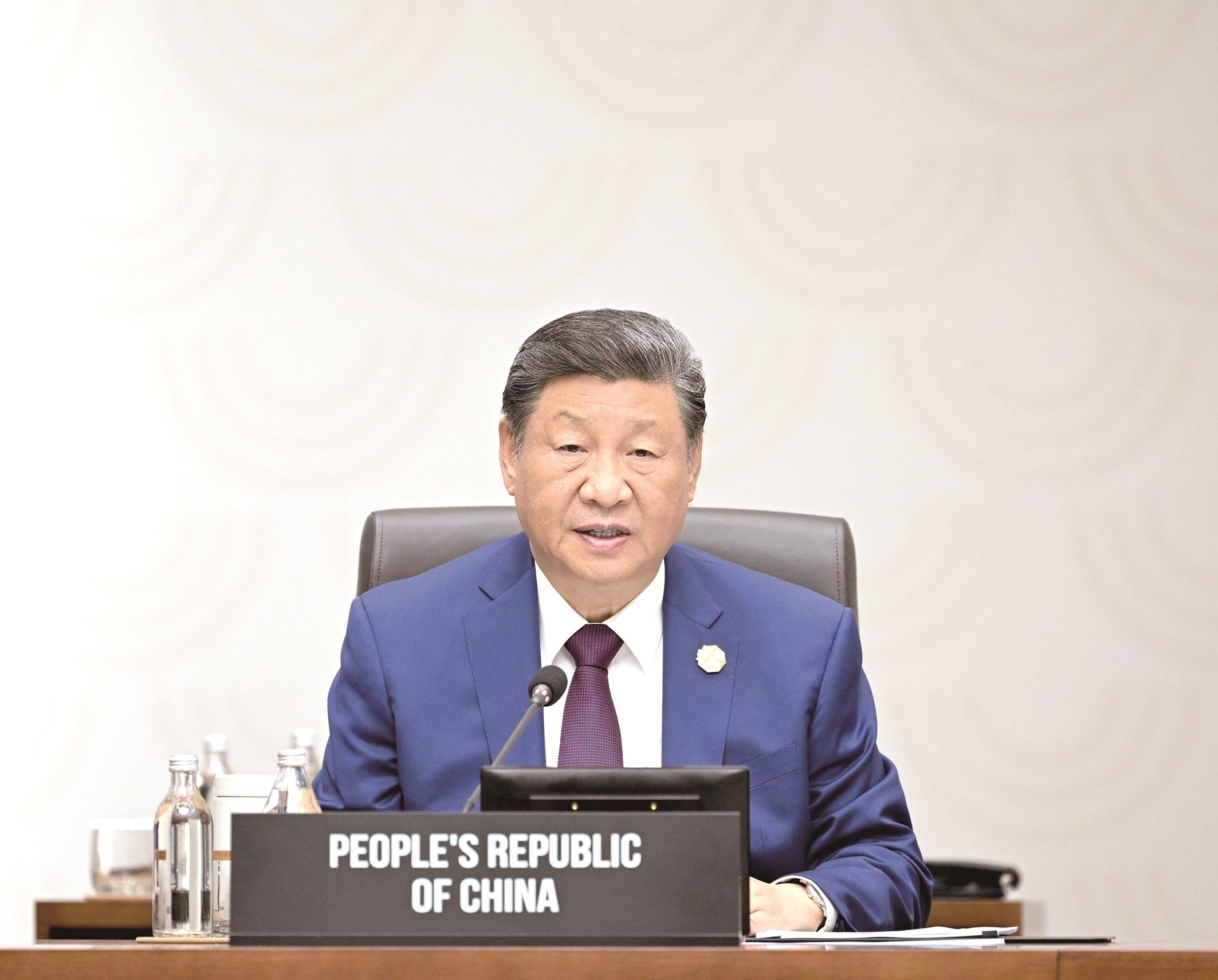 当地时间十一月一日上午,国家主席习近平在韩国庆州出席亚太经合组织第三十二次领导人非正式会议第二阶段会议,并发表题为《共同开创可持续的美好明天》的重要讲话。 新华社记者 谢环驰 摄