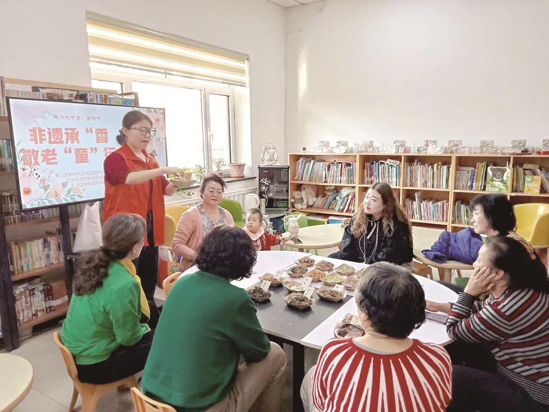 在基层社区,敬老活动更显细致入微。幸福路街道阳光社区党委联合关工委,邀请老年人与青少年共做非遗药香香囊,“五老”骨干耐心指导,祖孙同乐,药香中延续着文化根脉。随后的“群众拉家常”环节,从重阳民俗聊到社区食堂、健康义诊、儿童活动等暖心实事,通俗的话语道出社区党委对民生的深切关怀。幸福社区党委则联合爱心企业开展免费修脚活动,从需求摸排到知识讲解、专业服务,党员志愿者全程护航,细致守护老人们的“足下健康”。