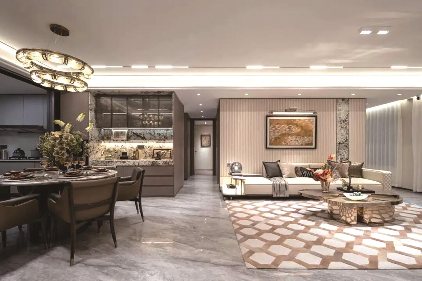 中海未来之境择址昆都仑区核心地段,打造以“未来东方,摩登雅园”为主题的约5万平方米沉浸式园林,以3米层高、客厅落地窗设计、小高层约92%-98%的得房率为核心亮点,并结合当代中国家庭生活需求的最新研究成果,设计约115-139平方米全周期户型,通过系统化的产品创新,将“好房子”理念回归于具体的生活场景。