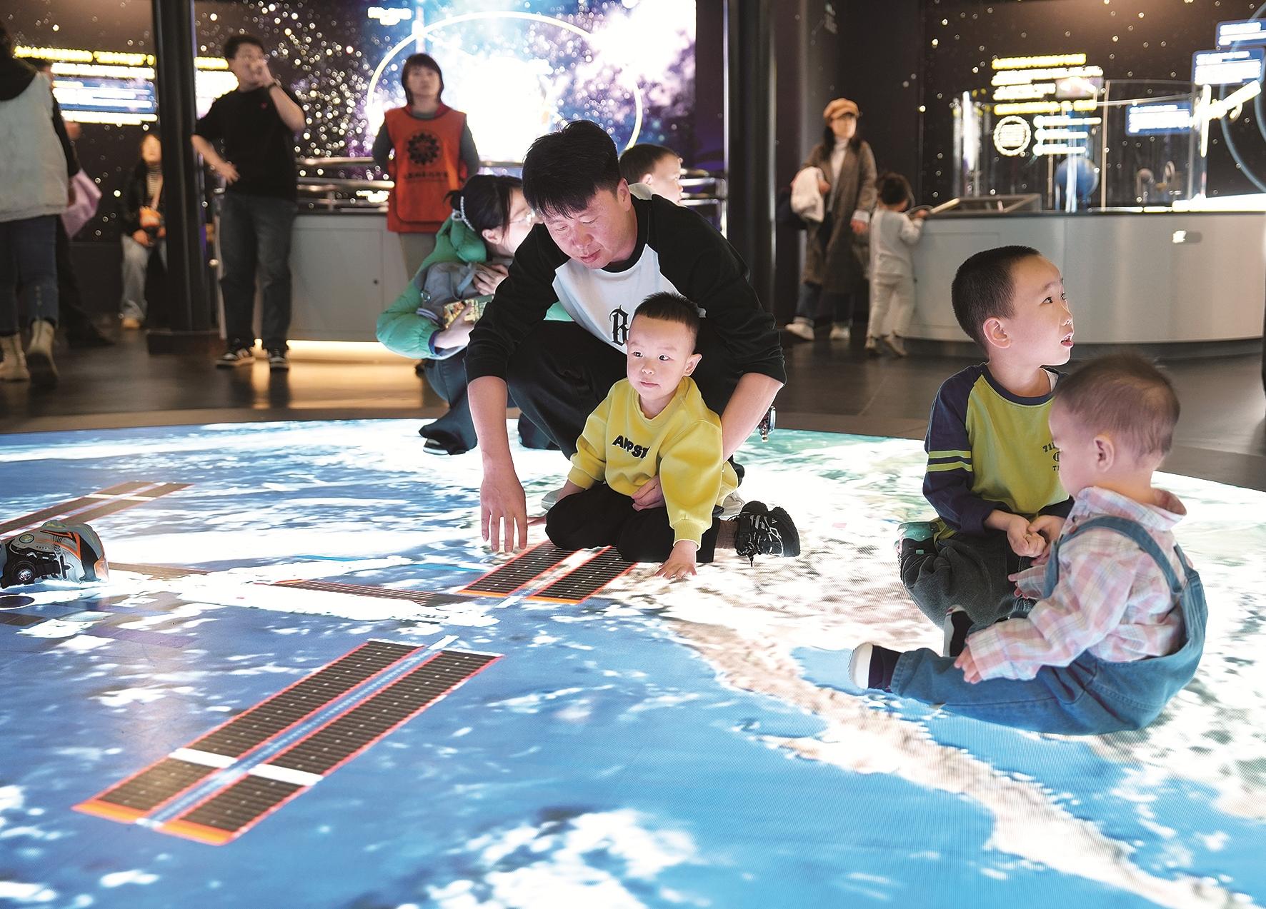 包头市科技馆设有主题展厅、多功能报告厅、XD影院以及科普活动室等,开发有200多节科普课程,自开放以来,年均接待观众超过40万人次。为持续满足公众需求,包头市科技馆于2024年12月升级改造了天文展厅,760平方米的空间内设置了30多件互动展品和穹顶投影系统。“天文展厅受到了广大市民的喜爱,最近来天文馆观影和体验的小朋友们增加了许多。后续也会继续利用我馆特有的科普资源,开发更多受青少年喜爱的科普课程、科普活动,让更多的孩子参与其中。”包头市科技馆观众服务部副部长王敏介绍。