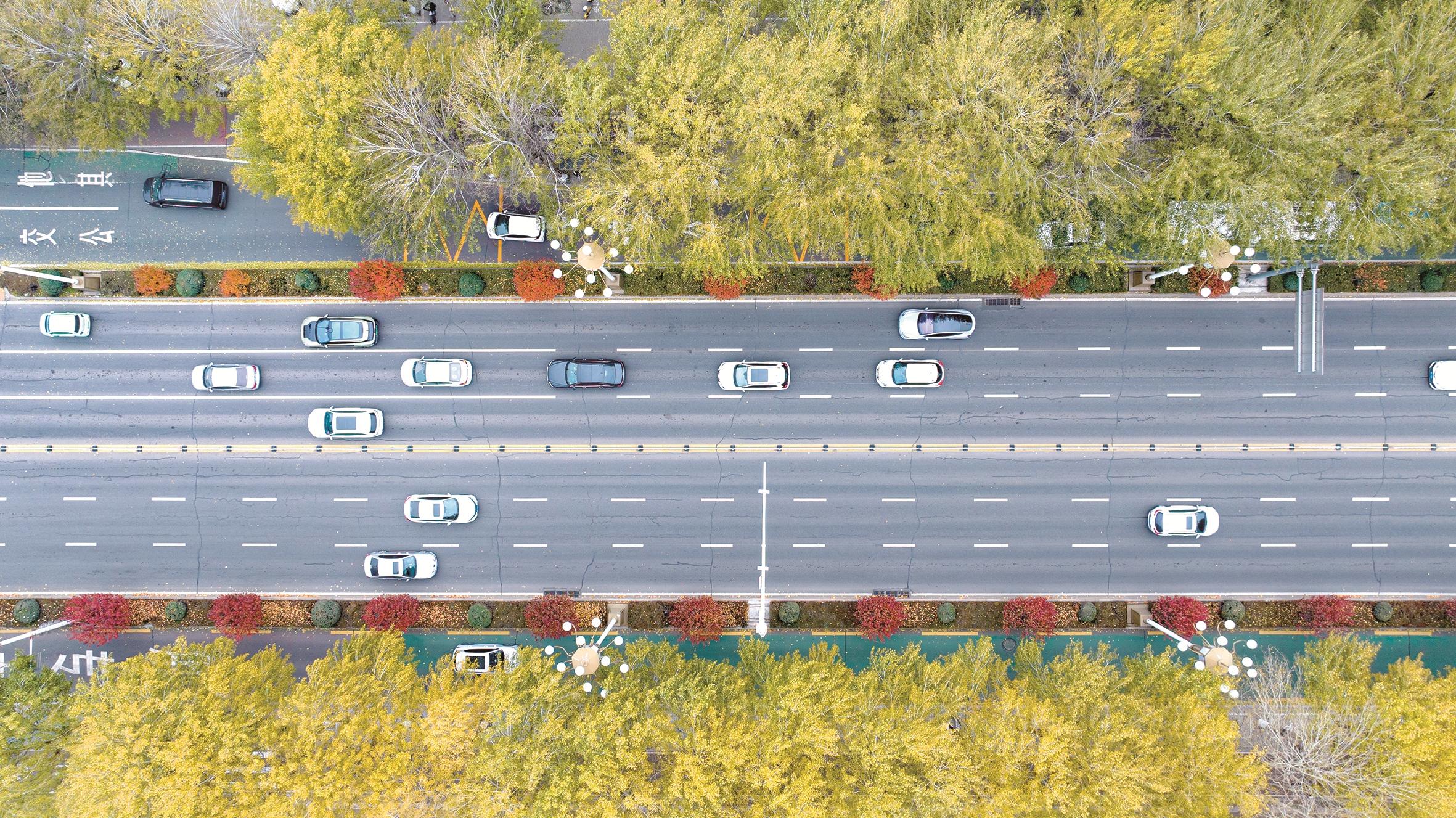 11月7日,是二十四节气中的立冬。6日,记者航拍钢铁大街看到,杨树缀满黄绿相间的叶片,海棠树燃着成片红叶,色彩交织成斑斓画卷。寒风叶影摇曳,既留存秋的余韵,又开启冬的序章。“你好冬天!时节交替,注意添衣保暖。” 记者 李强 摄