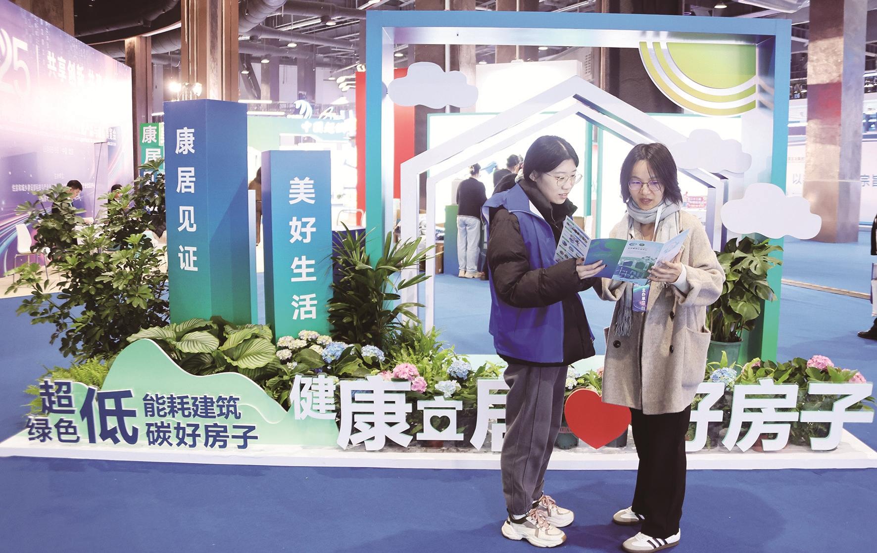 11月6日,参观者在住博会上了解绿色低碳好房子的展出内容。