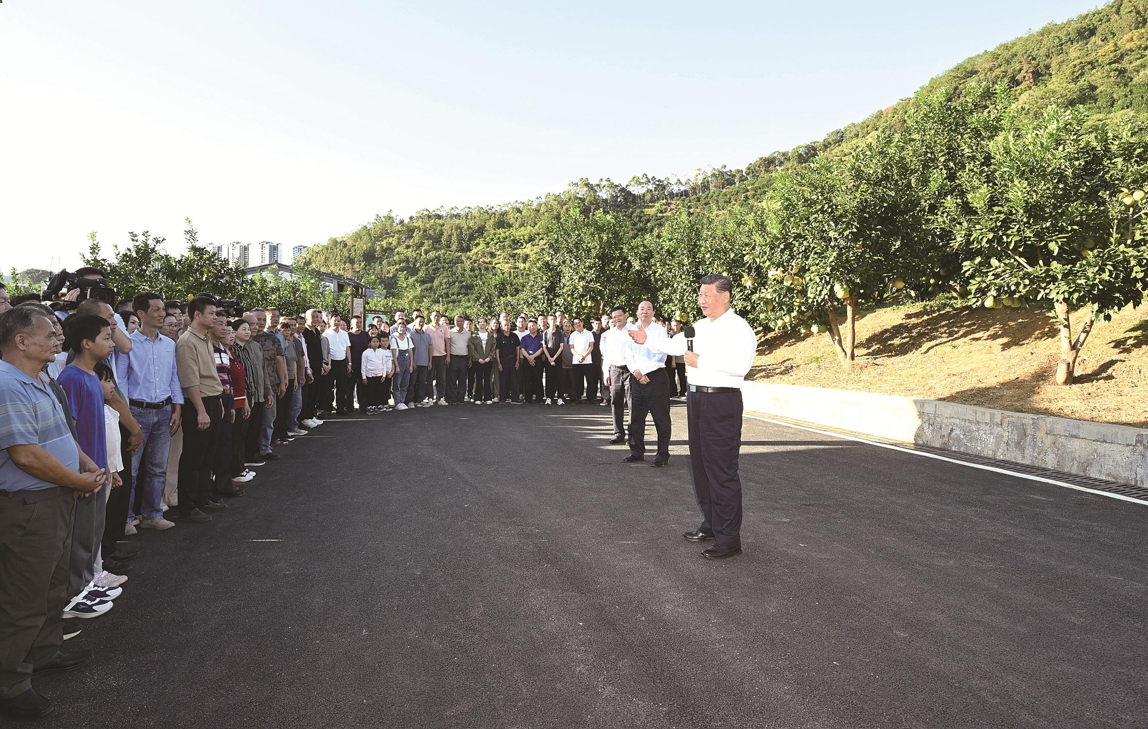 离开时,习近平同村民们亲切道别。他叮嘱,党和政府要继续加强对老区的政策扶持,老区广大干部群众要齐心协力、奋发图强。他祝愿乡亲们的日子过得像金柚一样又甜又美。