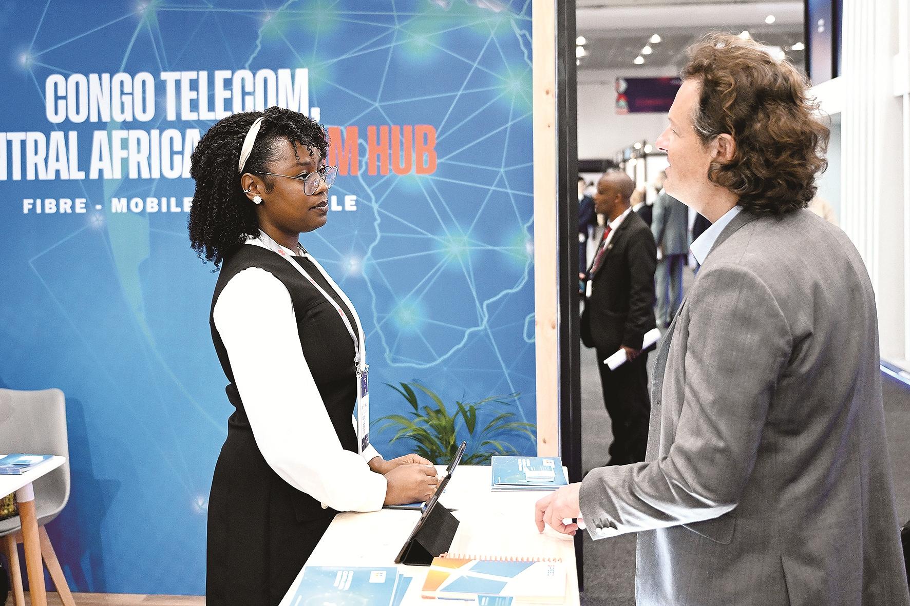 11月11日,在南非开普敦,人们在2025年非洲科技节的非洲通信展上交流。新华社发(哈比索·姆卡贝拉 摄)