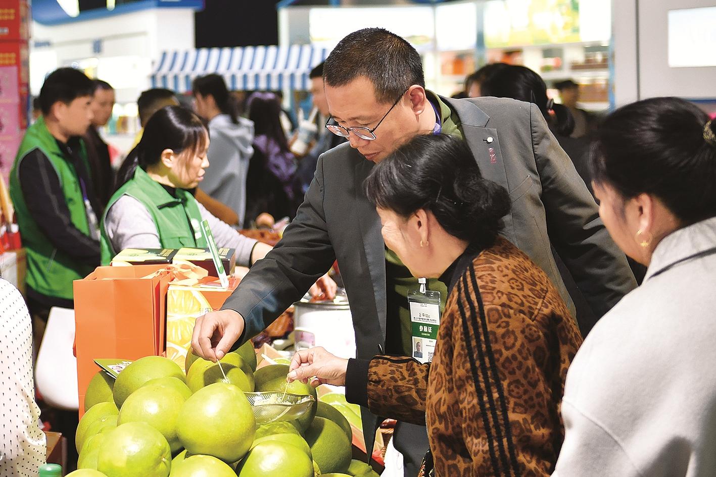 11月14日,以“科技引领、品牌赋能,助力乡村全面振兴”为主题的第二十六届中国中部(湖南)农业博览会在长沙开幕。图为观众在第二十六届中国中部(湖南)农业博览会上挑选商品。新华社记者 陈振海 摄